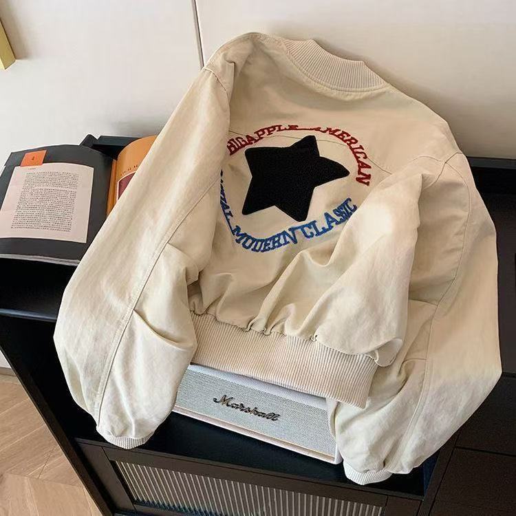미국 복고풍 자수 야구 세트 코트 여자 봄 2025 새로운 디자인 감각 느슨한 올 매치 패션 재킷 탑스토어 가기