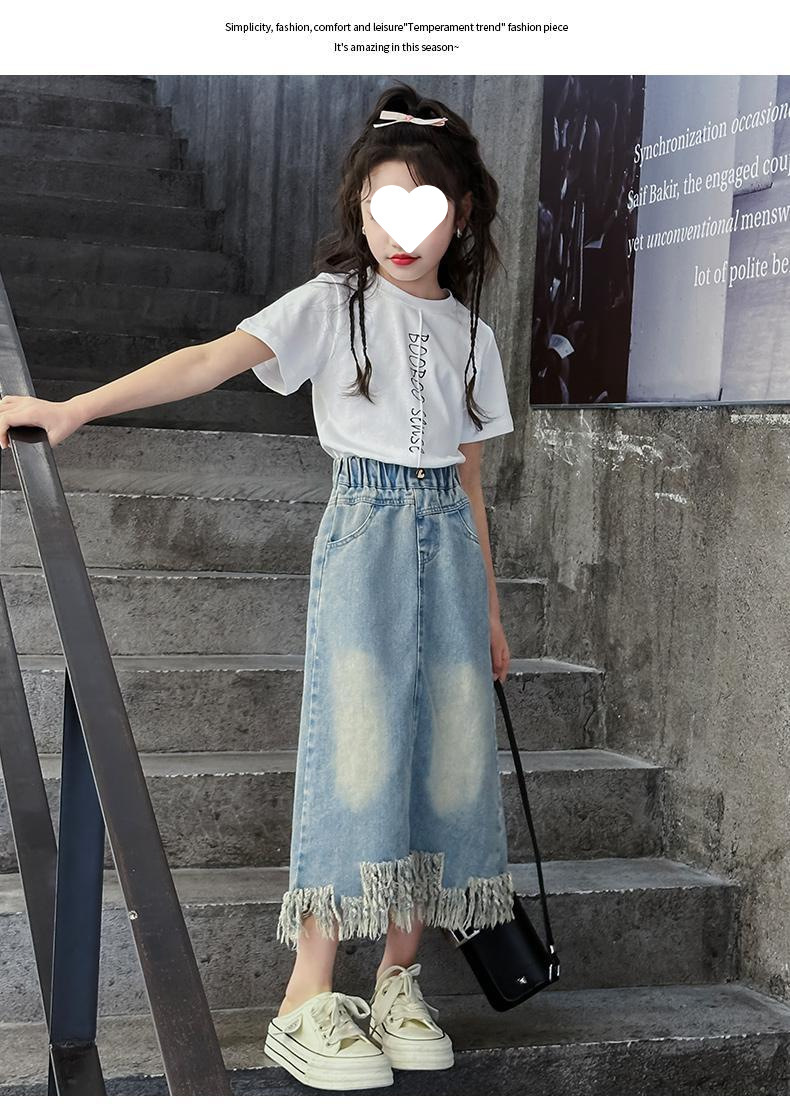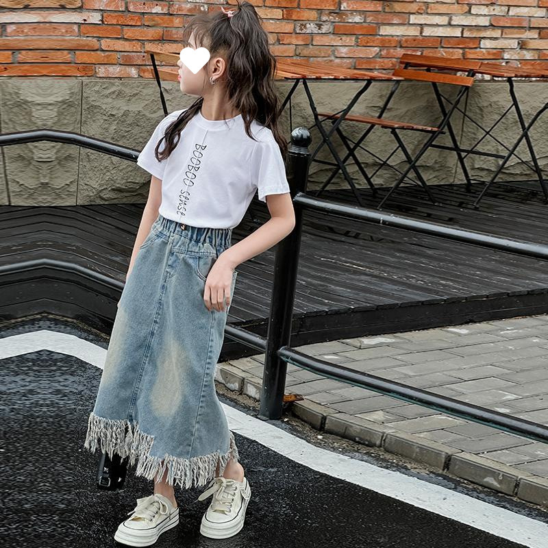 여자 데님 스커트 여름 2025 새로운 한국 스타일 미드 빅 키즈 패셔너블 스커트 세련 된 어린이 긴 세련 된 스커트