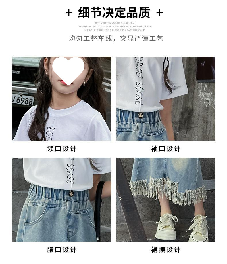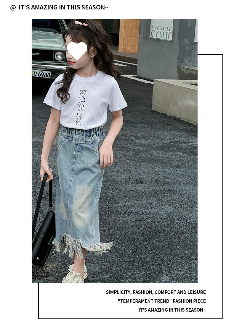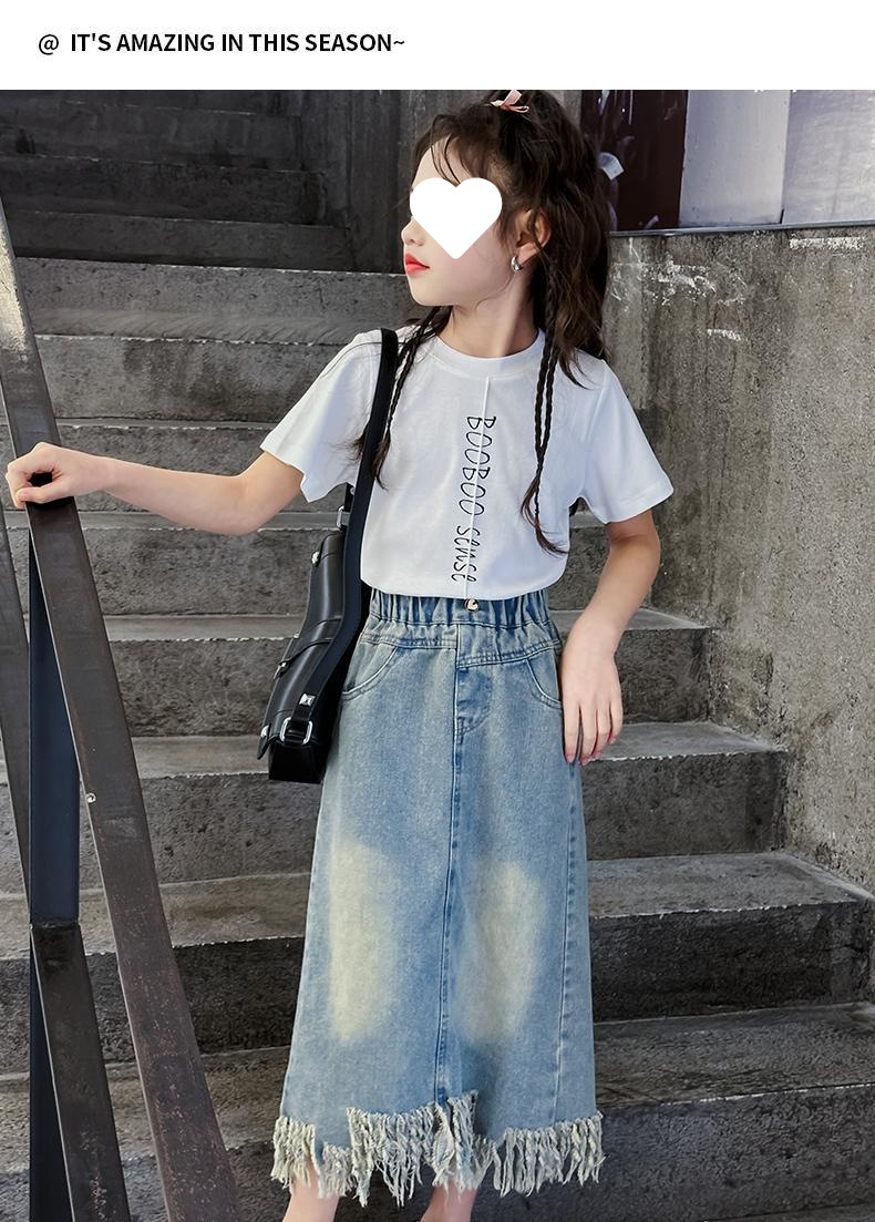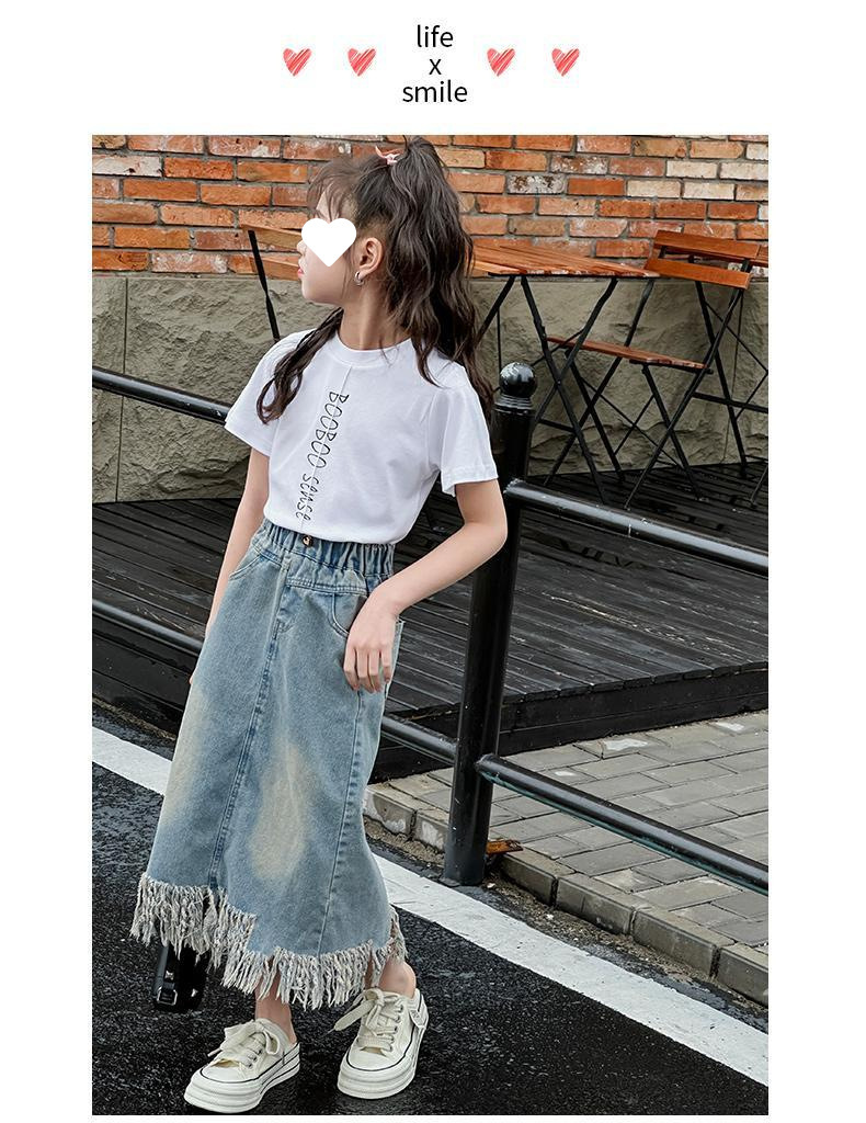 여자 데님 스커트 여름 2025 새로운 한국 스타일 미드 빅 키즈 패셔너블 스커트 세련 된 어린이 긴 세련 된 스커트스토어 가기