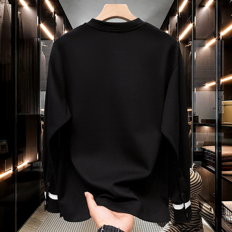 하이 엔드 느낌 ruffian 잘 생긴 긴팔 티셔츠 남성용 봄 올드 머니 스타일은 가벼운 럭셔리 작은 목선 스웨터 트렌디 한 브랜드 틈새 코트를 입습니다.