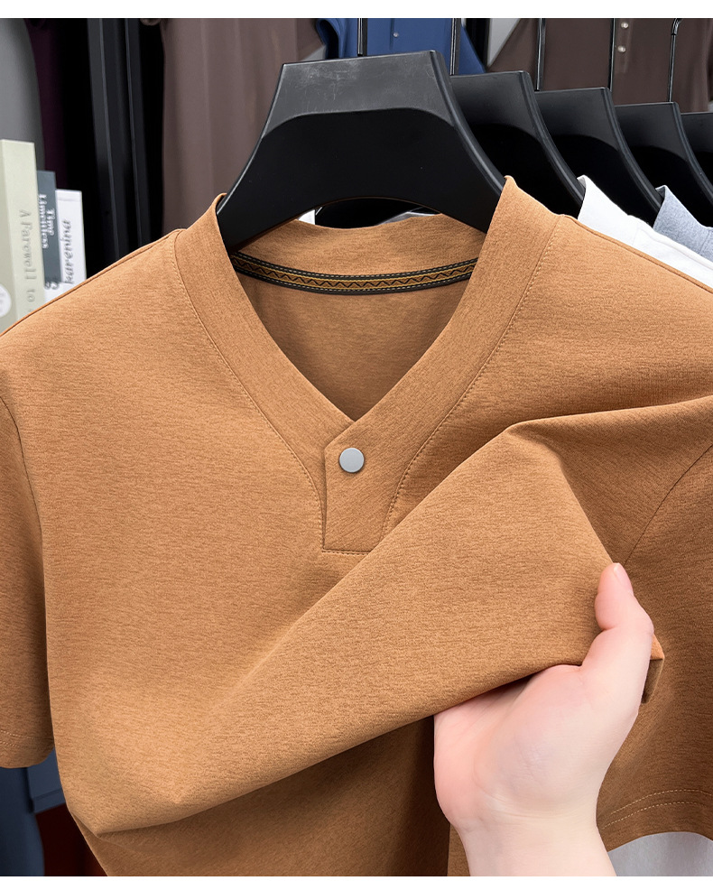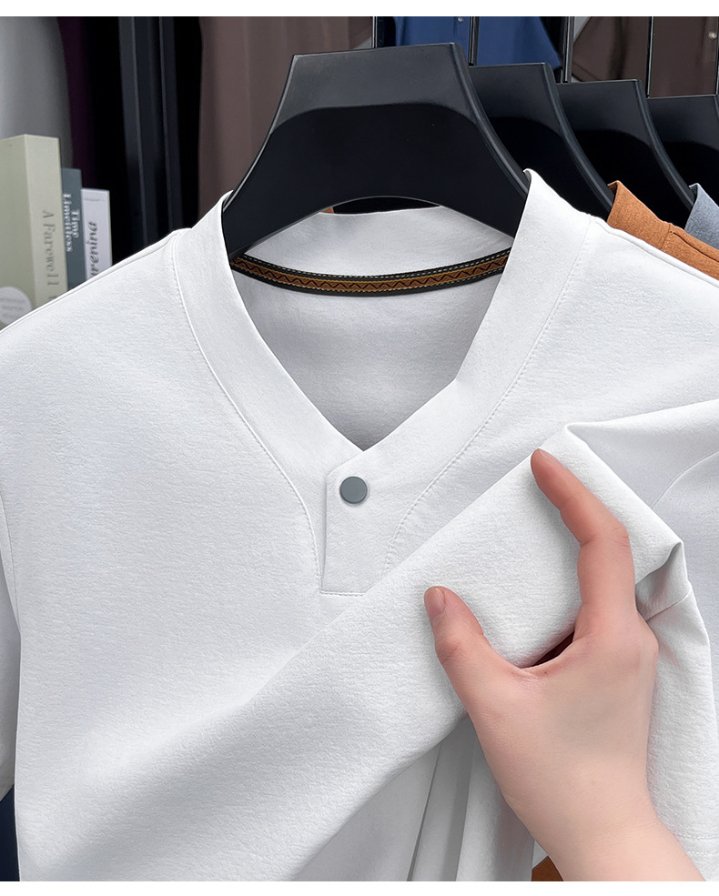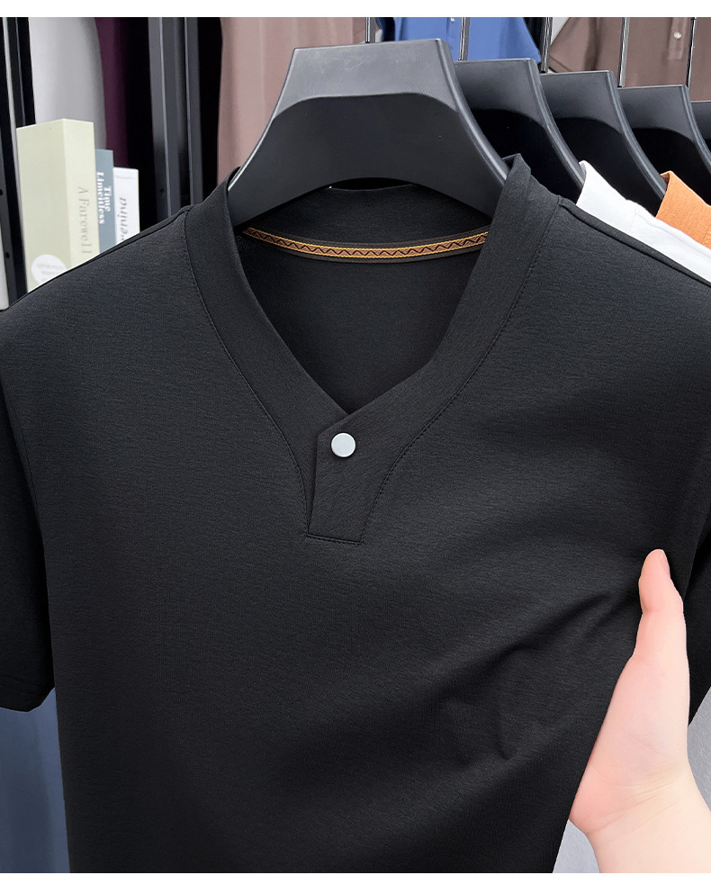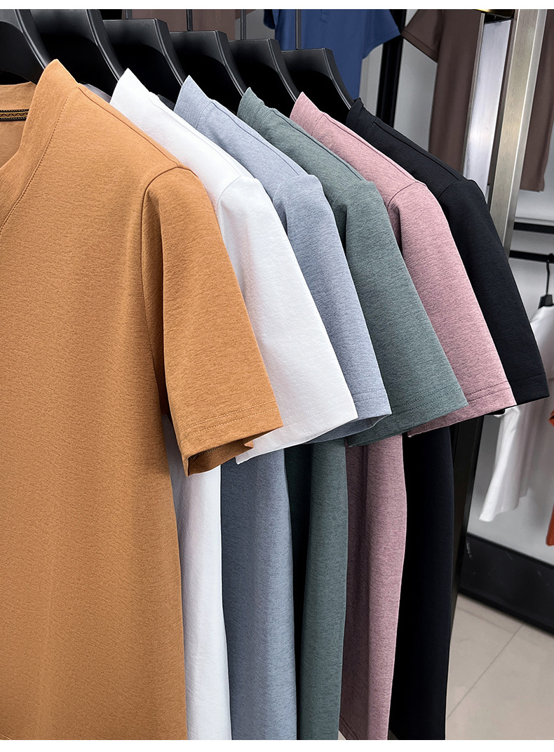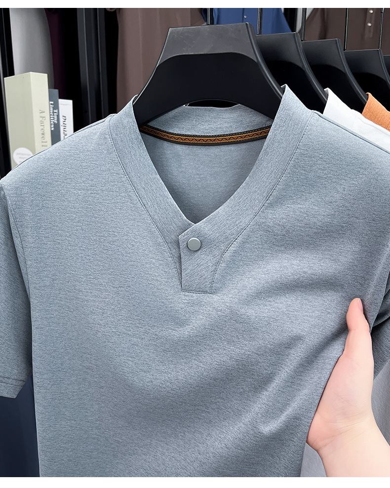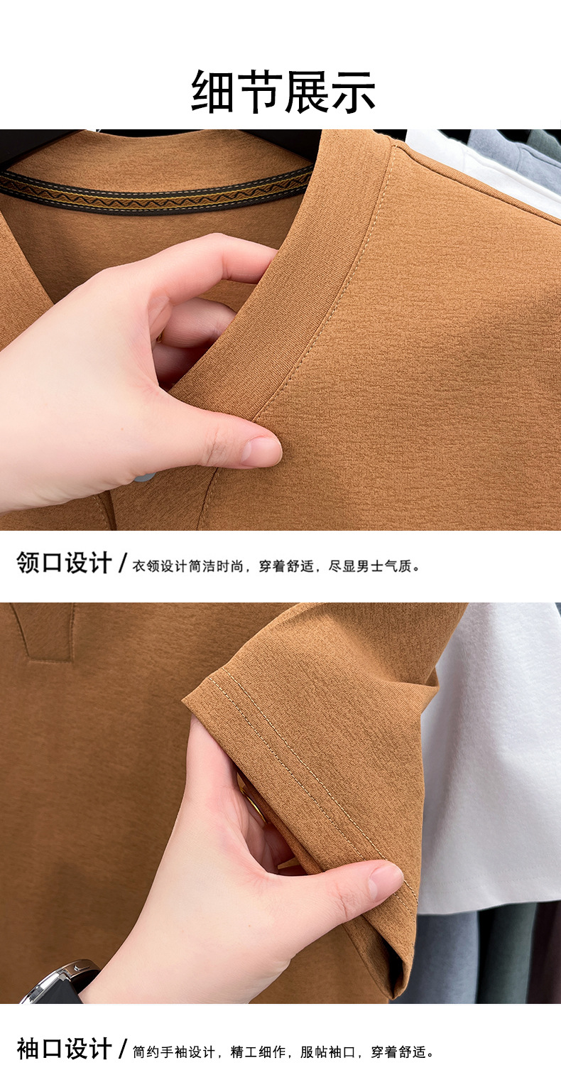2025夏季男士无痕休闲T恤高品质高弹力简约轻奢男装冰丝仿衬衫领
