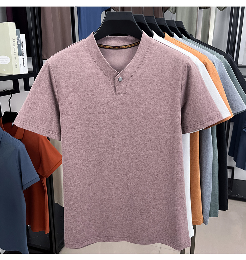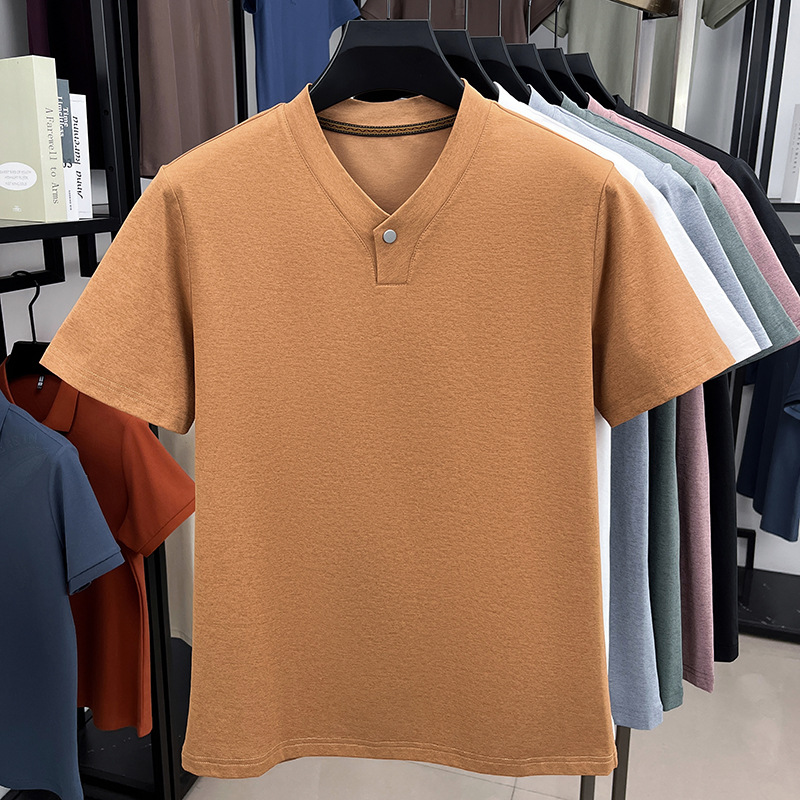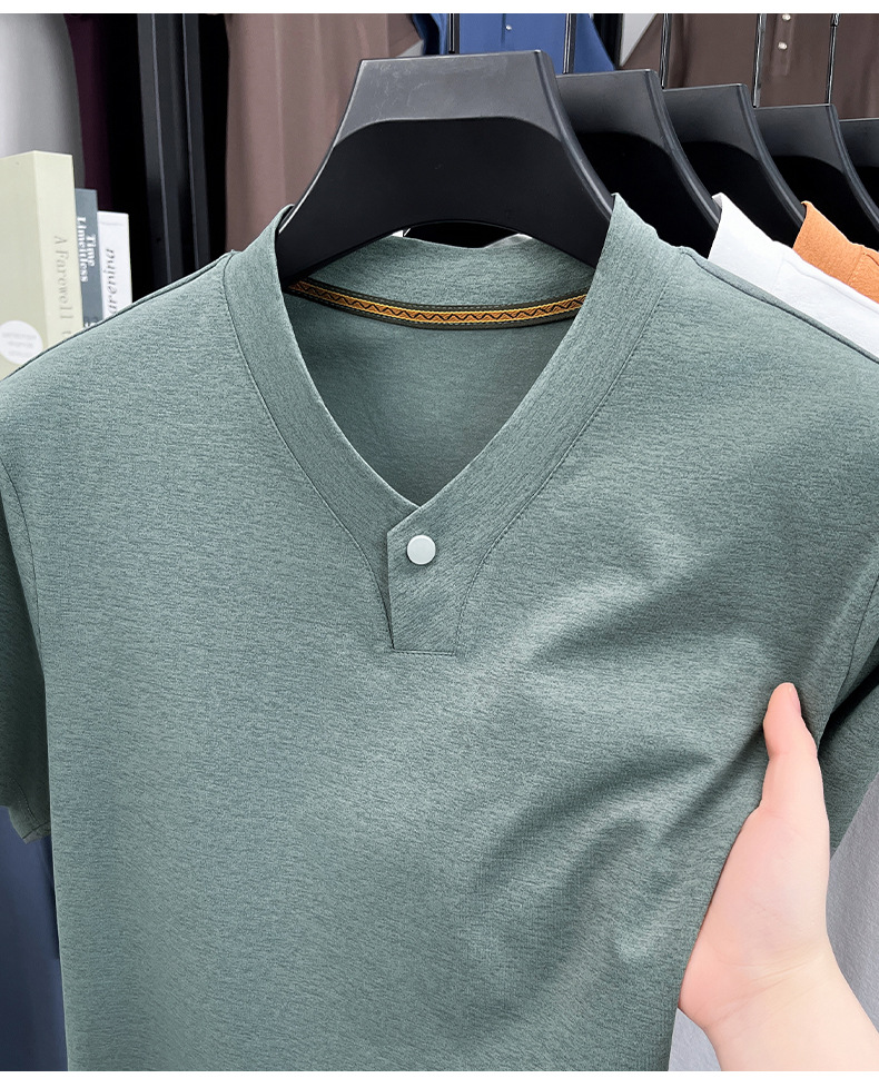 夏季时尚男士短袖V领一粒扣T恤潮流痞帅男装新品上衣休闲百搭衣服
