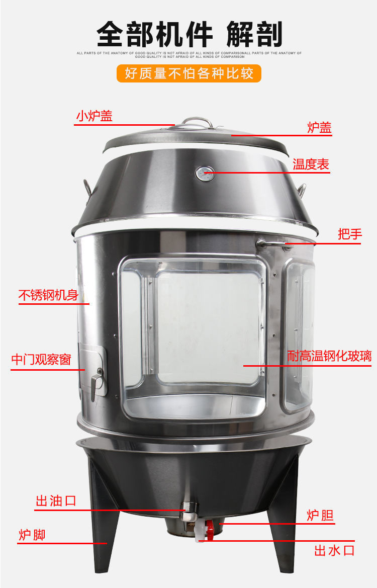 360 강화 유리 파노라마 디스플레이 숯 및 가스 이중 목적 로스트 오리 오븐 상업용 로스트 구스와 치킨 오븐 로스트 양고기 갈비