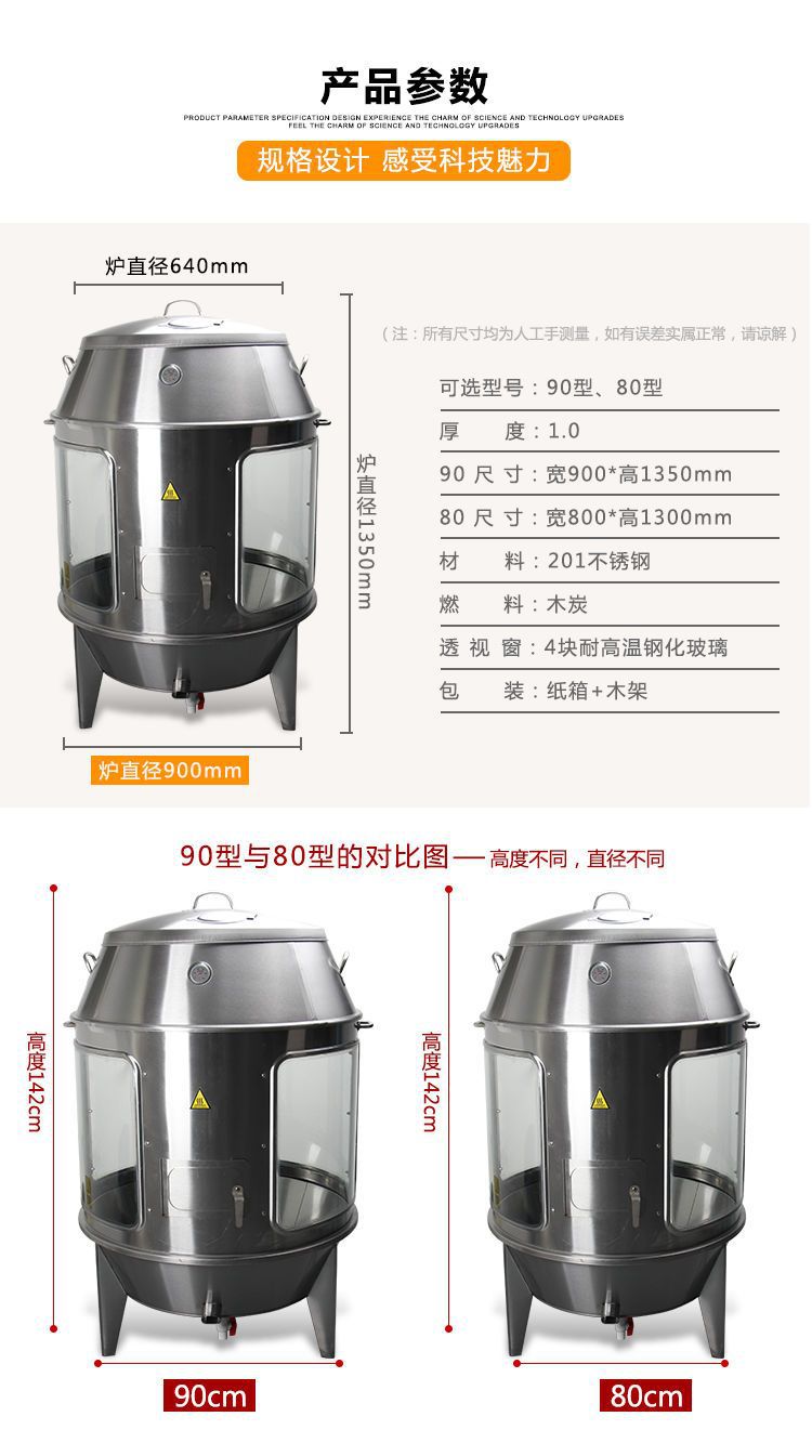 360 강화 유리 파노라마 디스플레이 숯 및 가스 이중 목적 로스트 오리 오븐 상업용 로스트 구스와 치킨 오븐 로스트 양고기 갈비스토어 가기