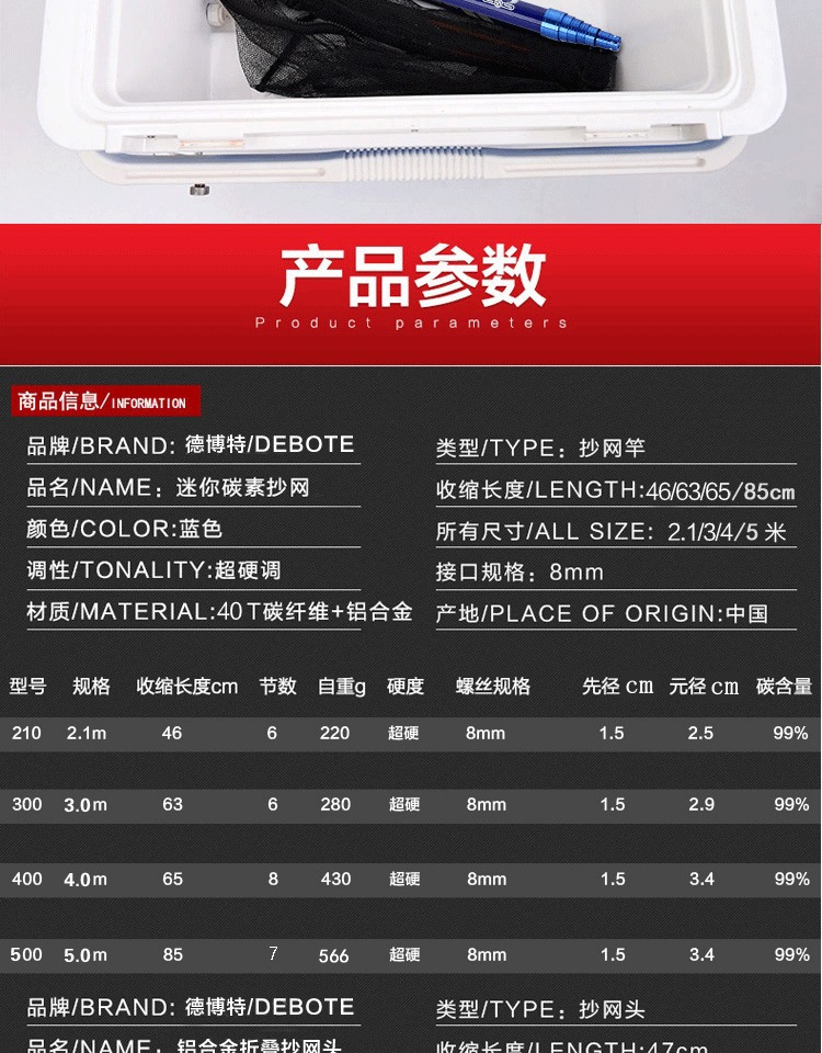 휴대용 탄소 미니 그물로드 짧은 섹션 2.1 미터 3 미터 4 미터 5 미터 낚시 그물 텔레스코픽 막대 슈퍼 하드스토어 가기