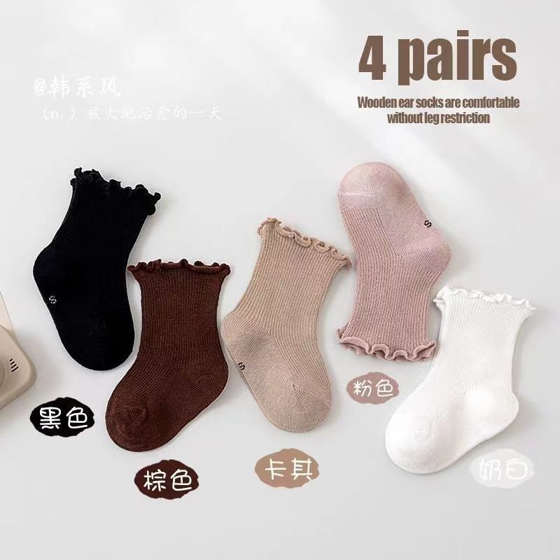 봄과 가을 아기 양말 면 느슨한 다리가없는 귀 어린이 짧은 양말 아기 중간 튜브 양말 걸스 레이스 양말