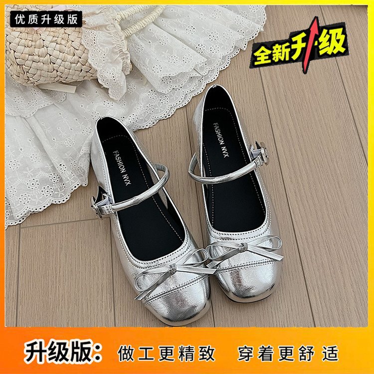 실버 둥근 발가락 낮은 발 메리 제인 신발 여성의 2025 새로운 봄 프랑스 복고풍 원피스 얕은 입 가죽 신발스토어 가기