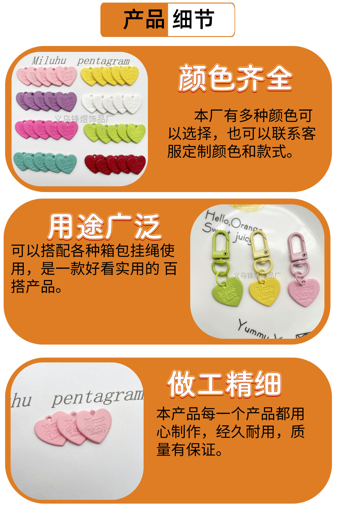 캔디 컬러 페인트 아크릴 합금 모조 양면 영어 하트 태그 키체인 DIY 액세서리 마카롱