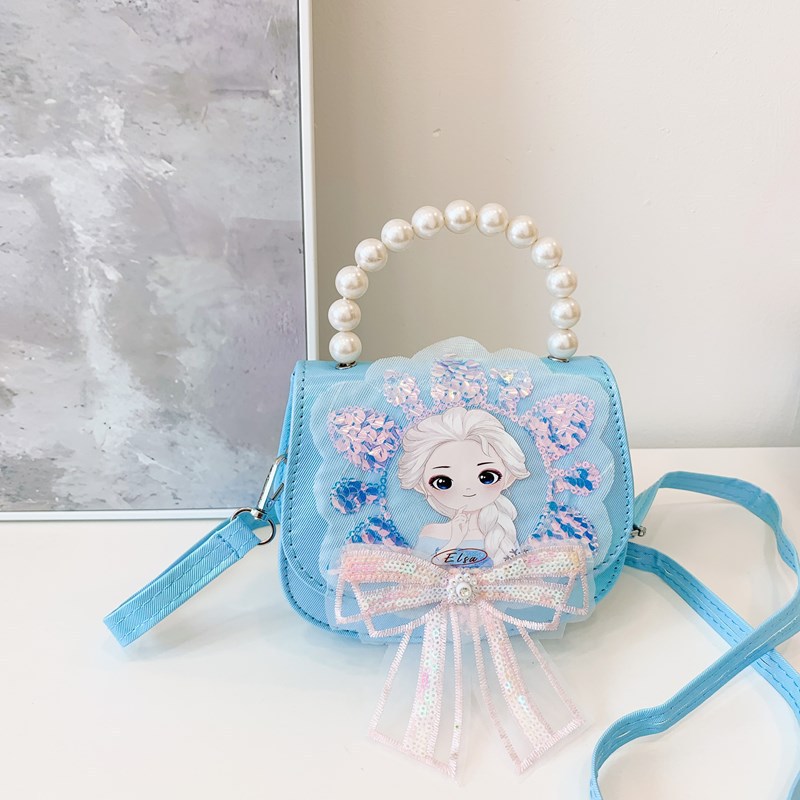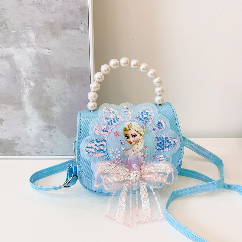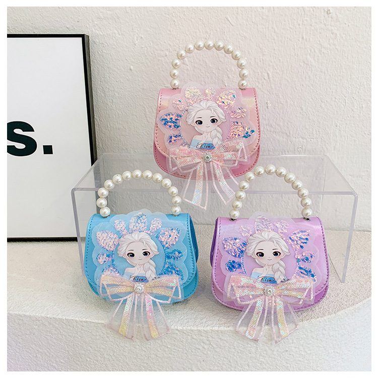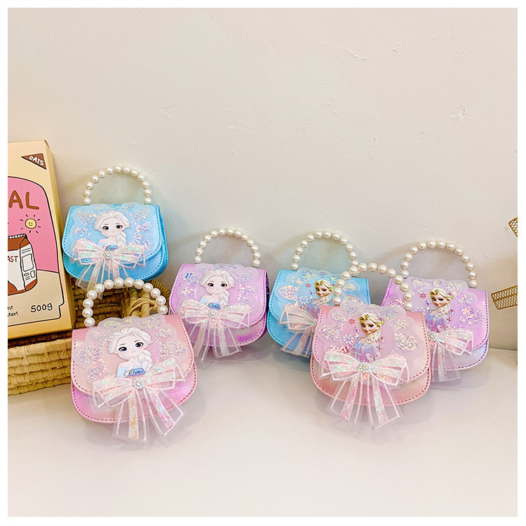 2024 만화 어린이 동전 지갑 새로운 소녀 귀여운 공주 진주 핸드백 패션 밝은 얼굴 메신저 가방 조수스토어 가기