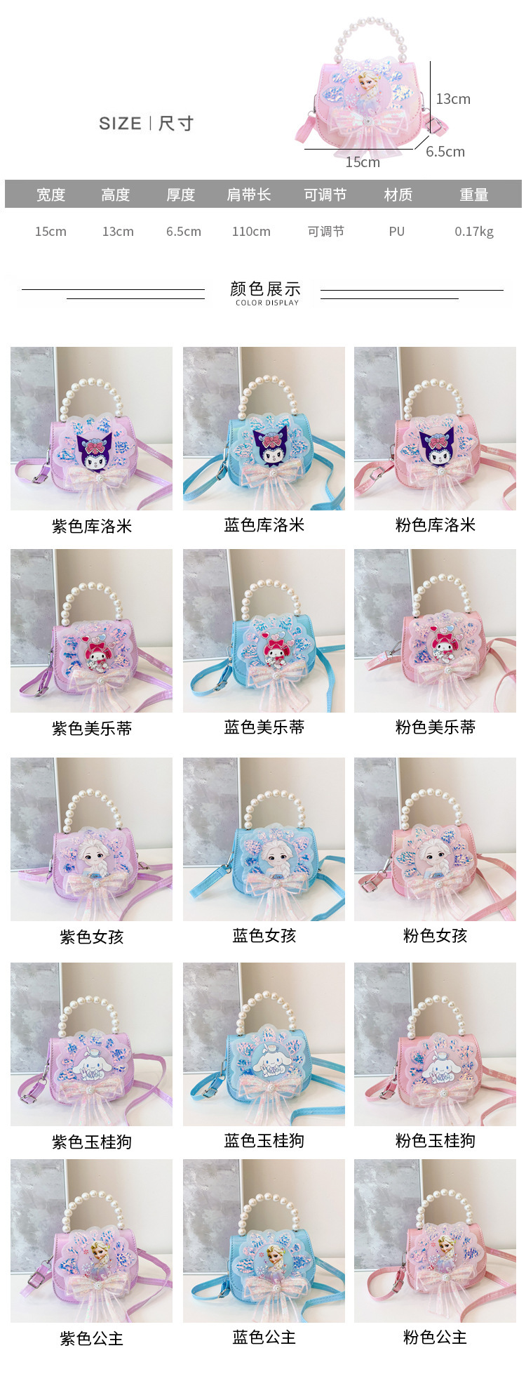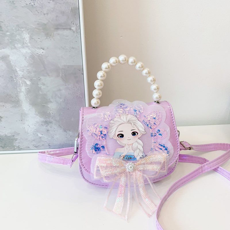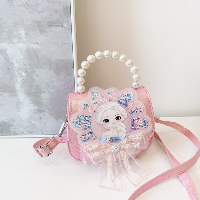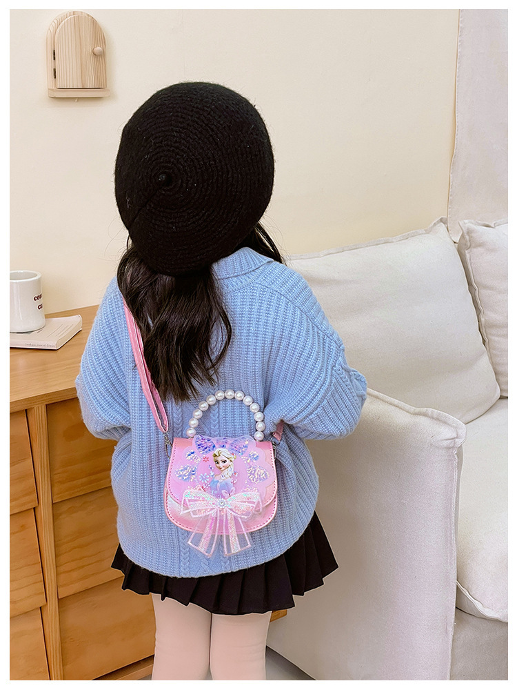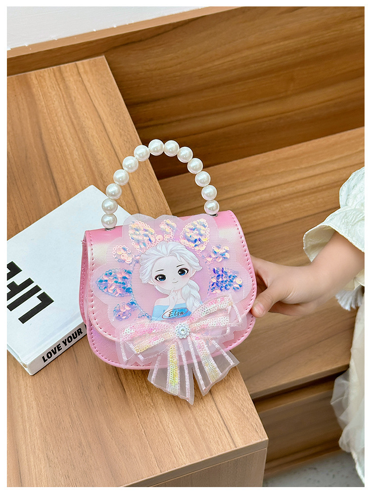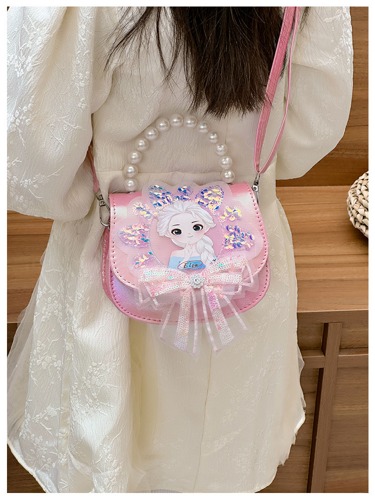 2024 만화 어린이 동전 지갑 새로운 소녀 귀여운 공주 진주 핸드백 패션 밝은 얼굴 메신저 가방 조수