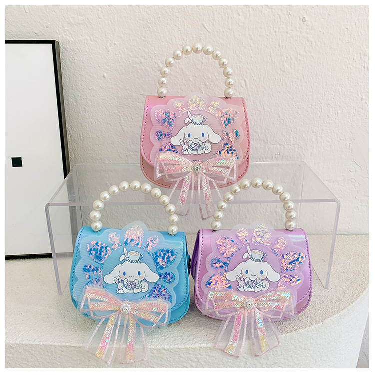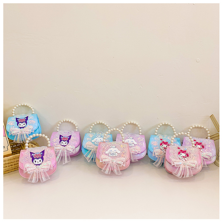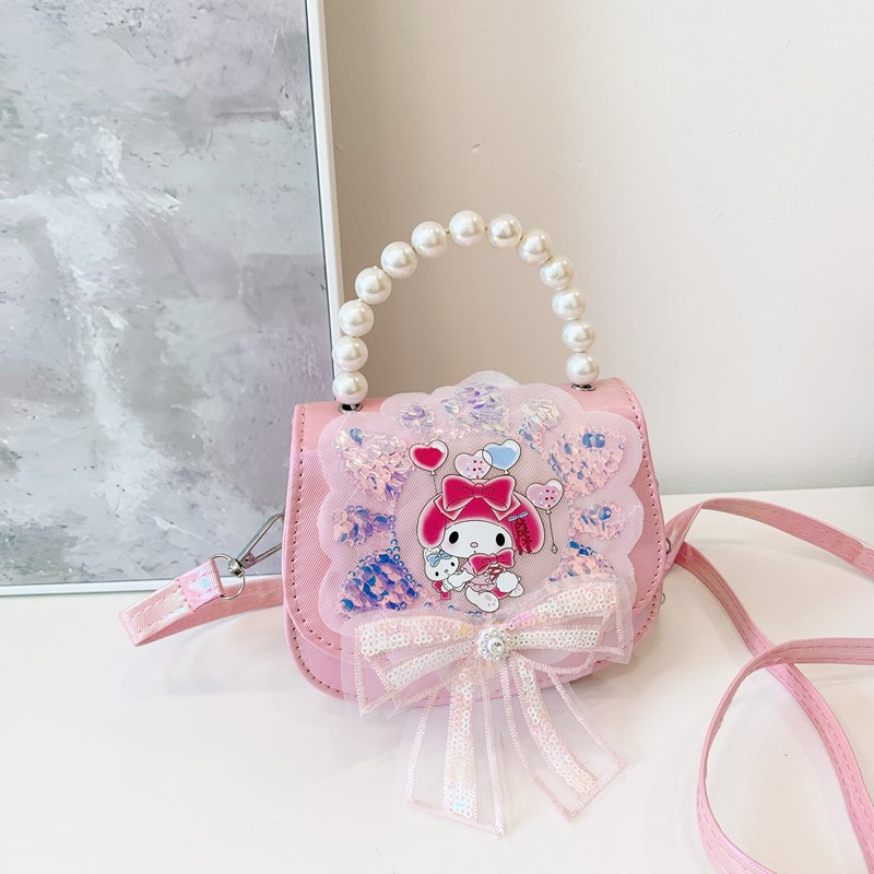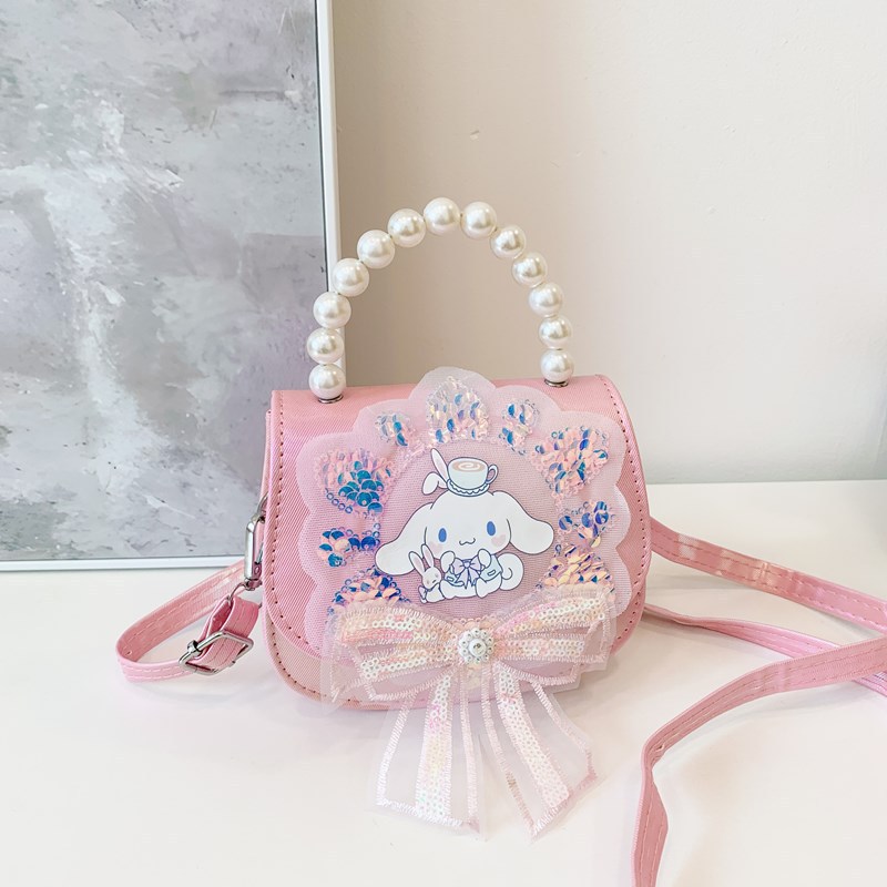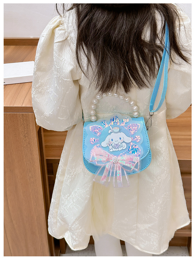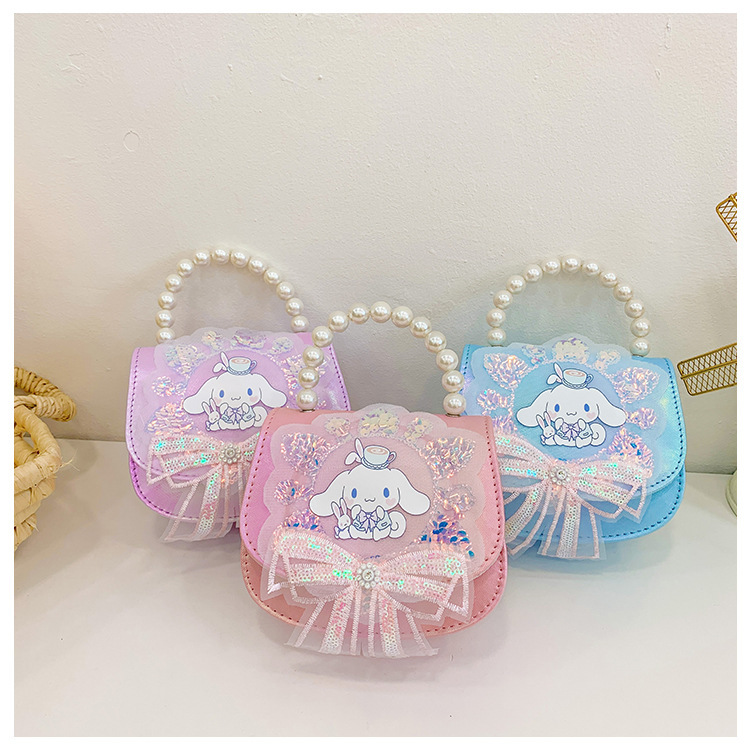 2024 만화 어린이 동전 지갑 새로운 소녀 귀여운 공주 진주 핸드백 패션 밝은 얼굴 메신저 가방 조수