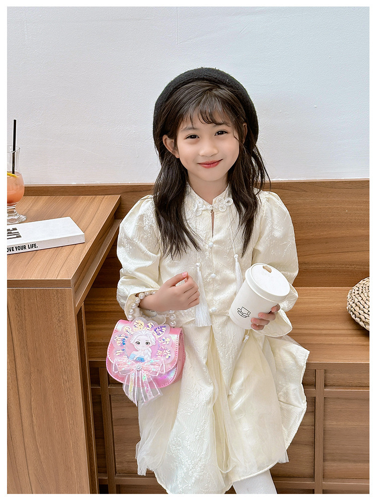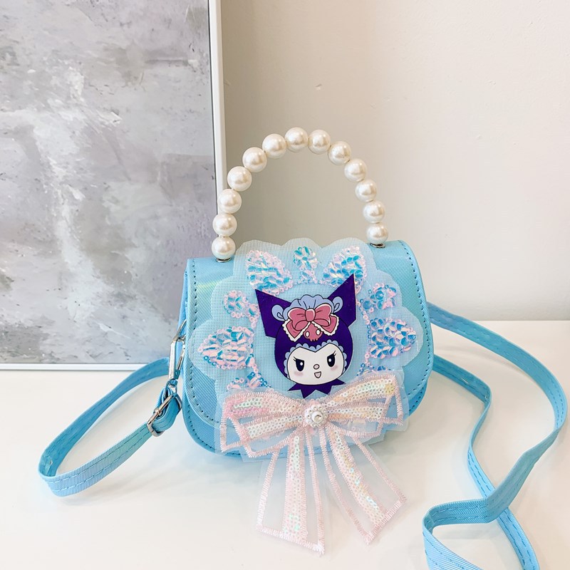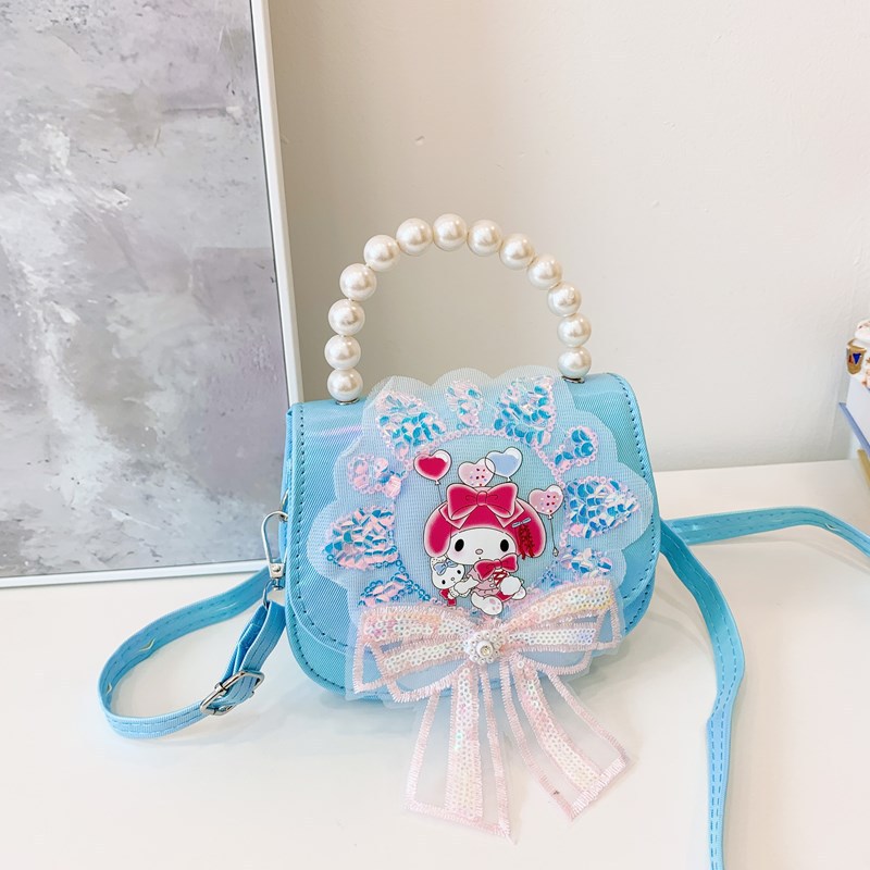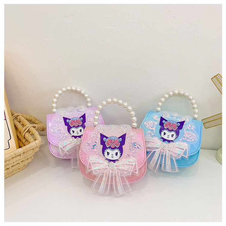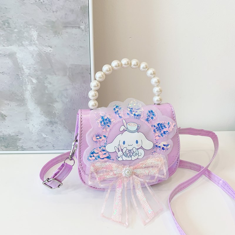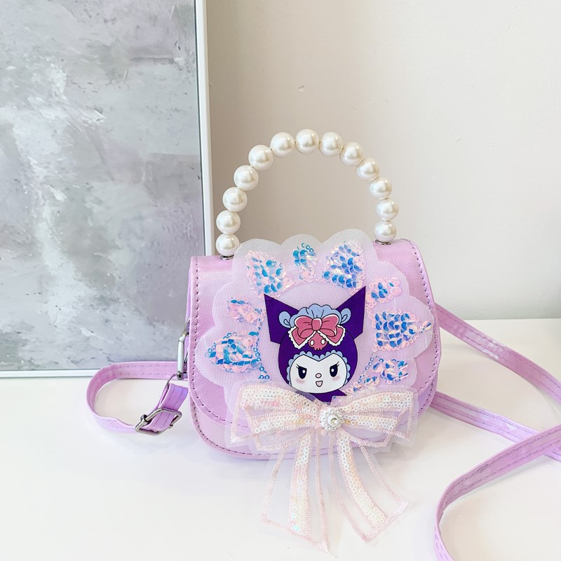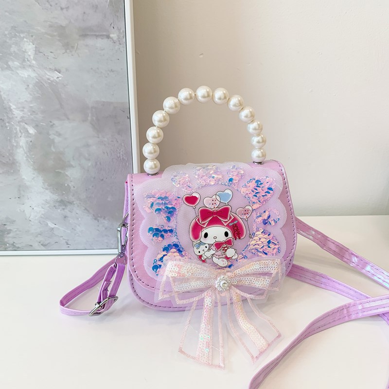 2024 만화 어린이 동전 지갑 새로운 소녀 귀여운 공주 진주 핸드백 패션 밝은 얼굴 메신저 가방 조수