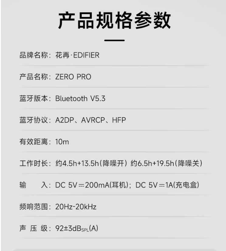 漫步者(EDIFIER)Zero Pro 真无线主动降噪蓝牙耳机 入耳式耳机 蓝牙5.3 适用苹果华为小米