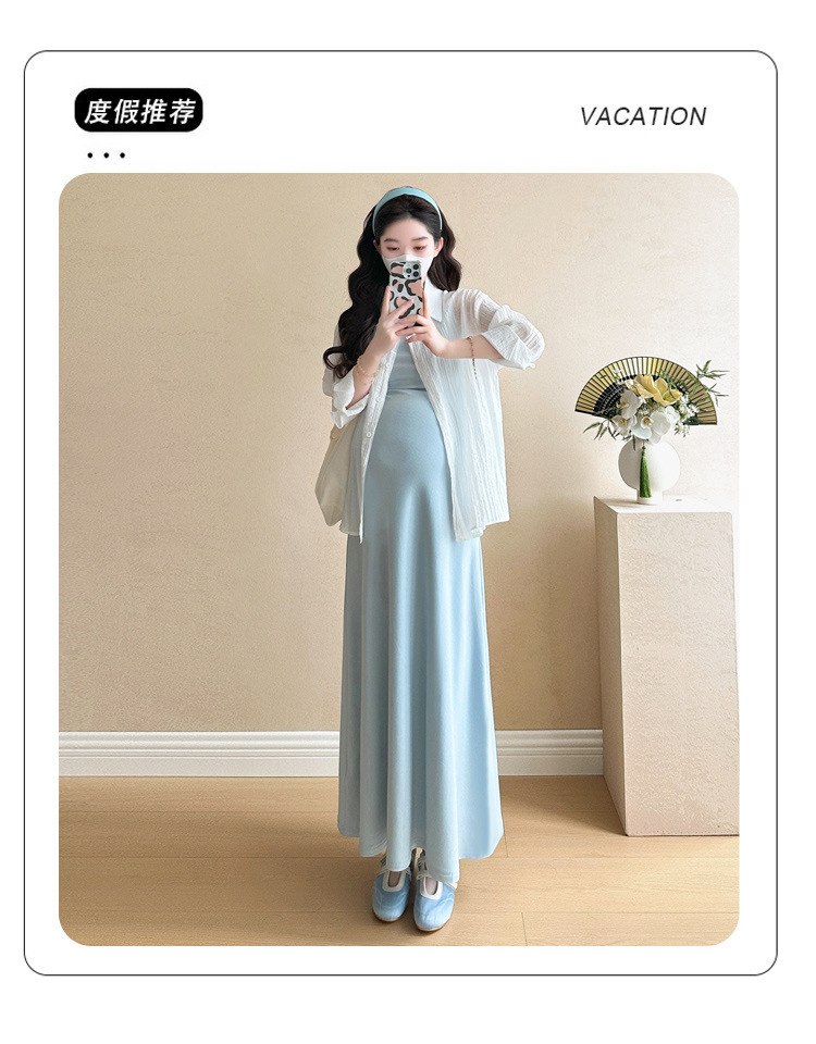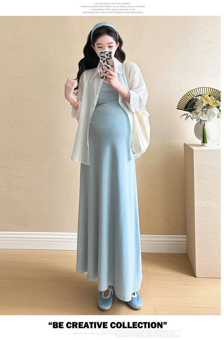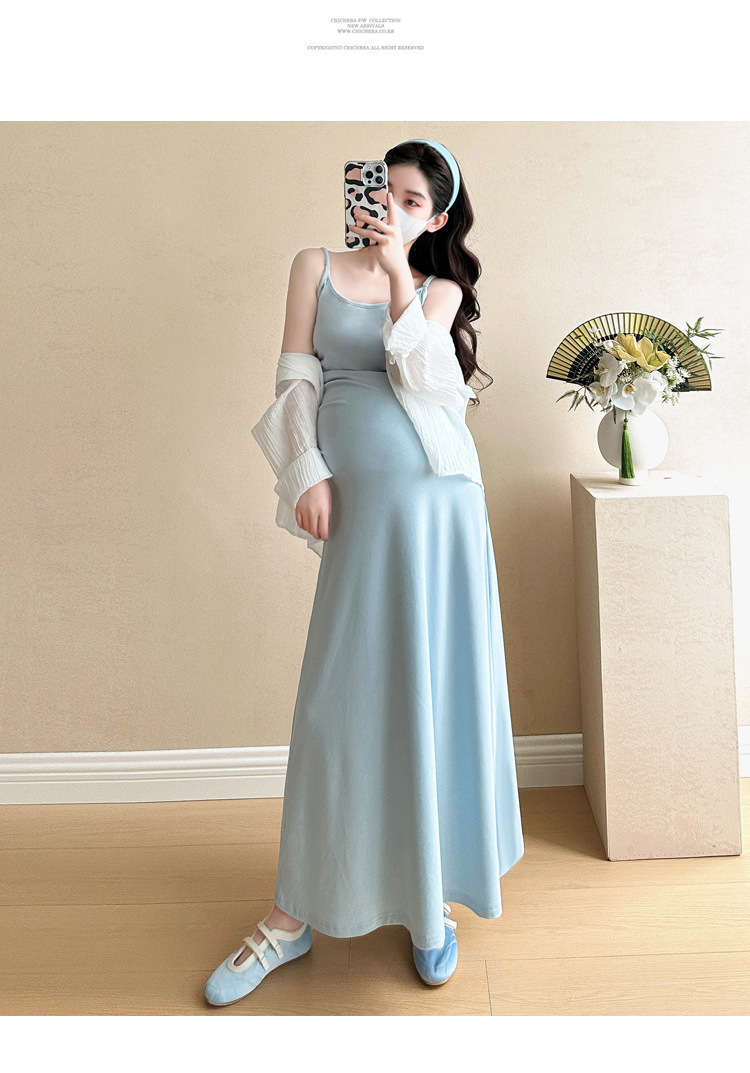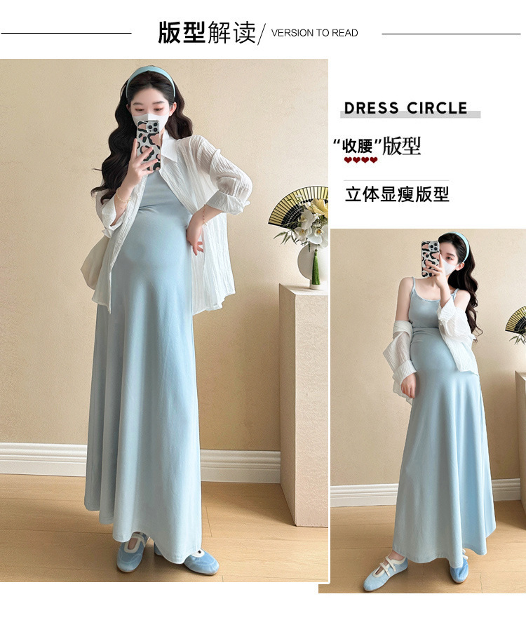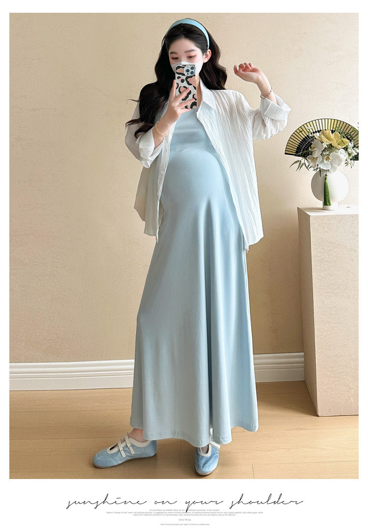 2025 여름 출산 원피스 프랑스 간단한 두 조각 새로운 긴팔 셔츠 주름 디자인 임산부 여성 슬립 스커트스토어 가기