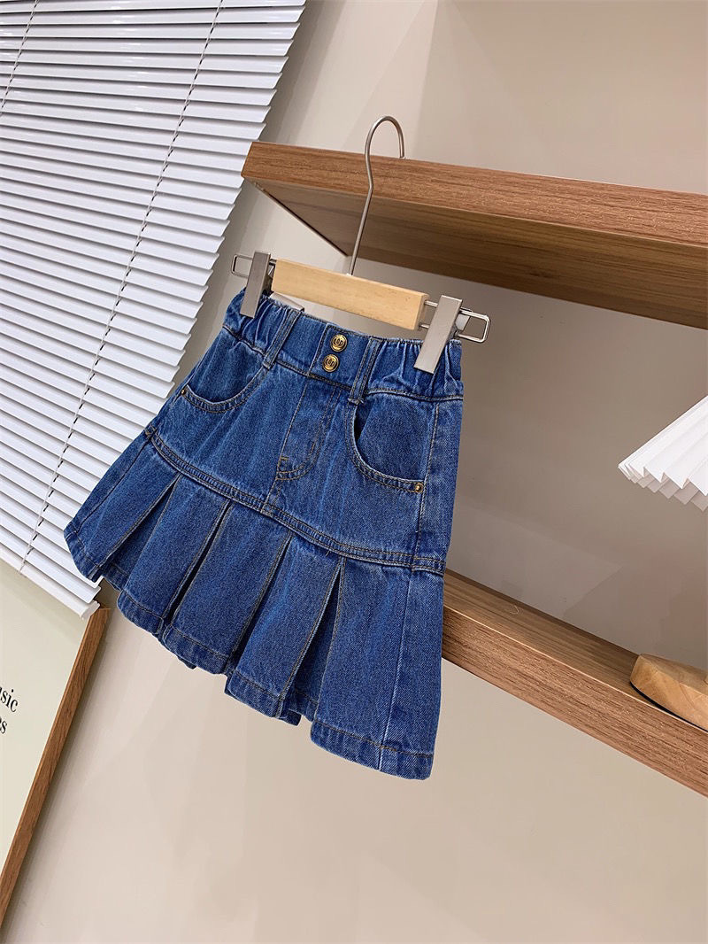 소녀 데님 Culottes 2025 가을과 여름 여자 대학 스타일 높은 허리 세척 데님 주름 치마