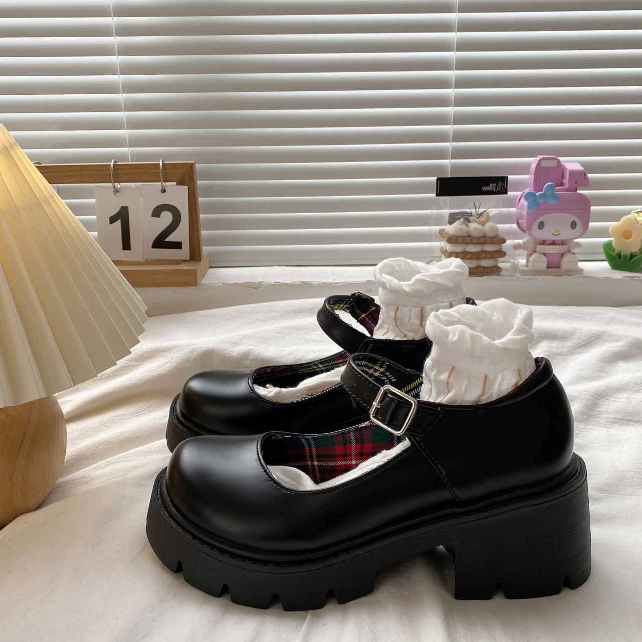 일본 봄과 여름 패션 jk 유니폼 신발 높이 증가 두꺼운 밑창 학생 Mary Jane 복고풍 싱글 레이어 신발 영국 스타일의 작은 가죽 신발
