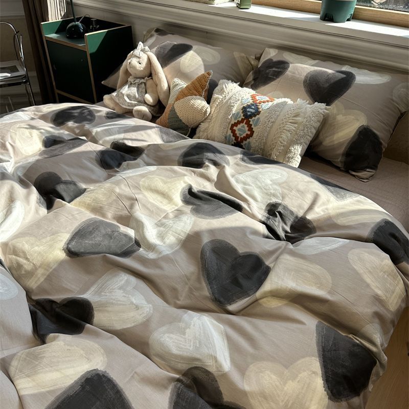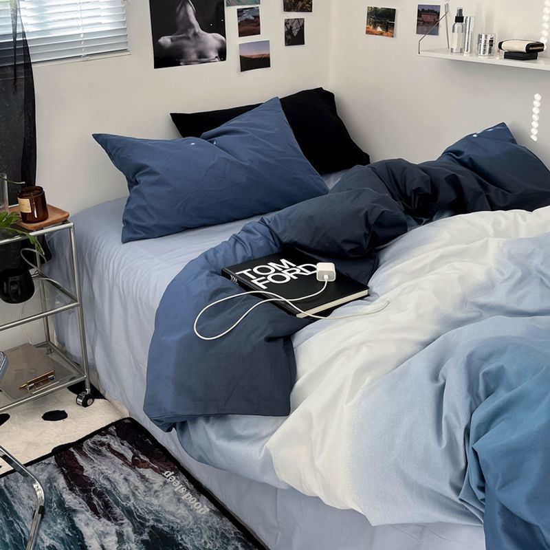 넷 레드 워시 코튼 4 피스 침구 봄과 가을 학생 싱글 기숙사 침대 시트 3 피스 세트 남성 여름 퀼트 커버스토어 가기