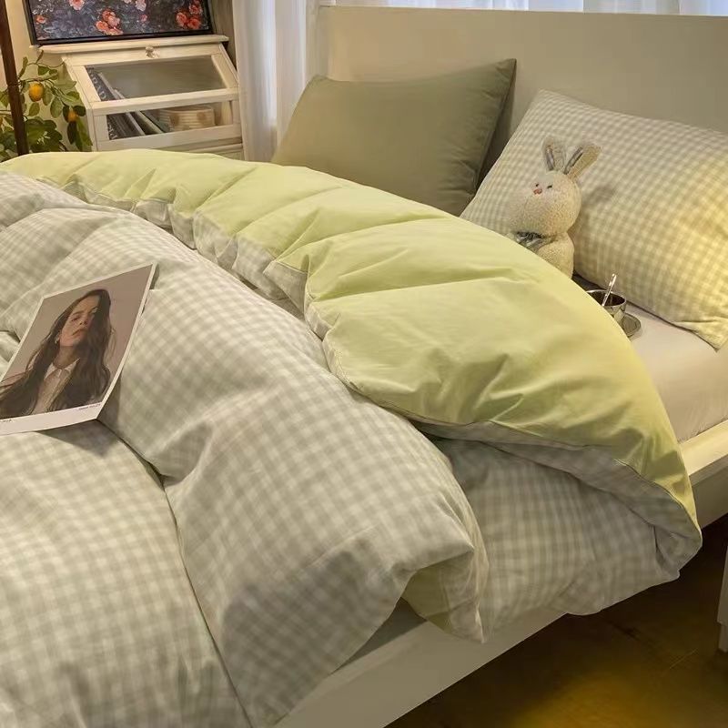 넷 레드 워시 코튼 4 피스 침구 봄과 가을 학생 싱글 기숙사 침대 시트 3 피스 세트 남성 여름 퀼트 커버