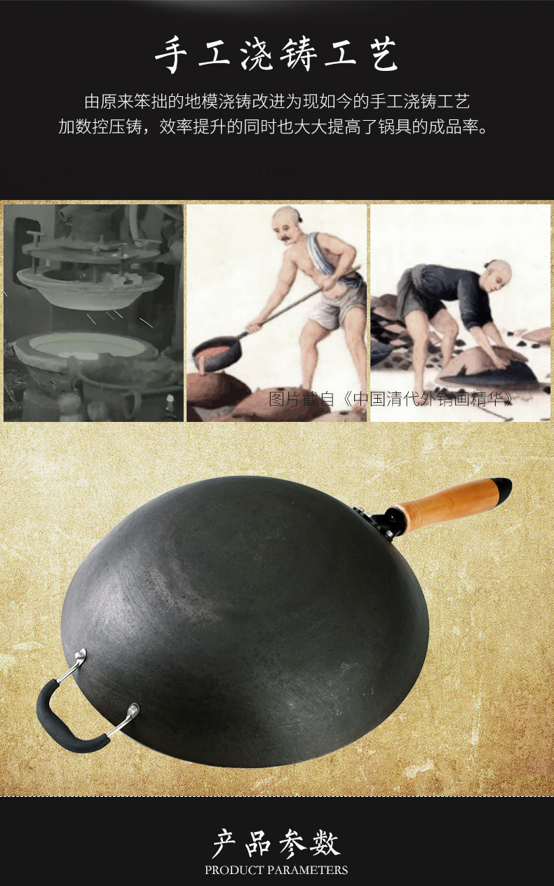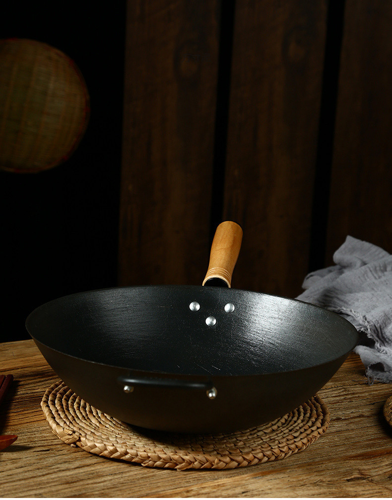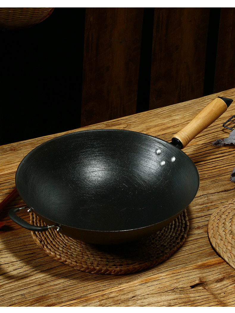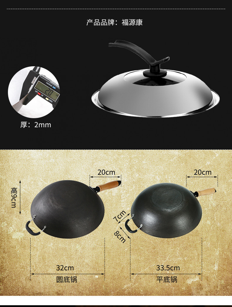 구식 원시 철 냄비 라운드 하단 워크 스틱 팬 전통적인 플랫 하단 유도 쿠커 가스 스토브 조리기구 공급 체인