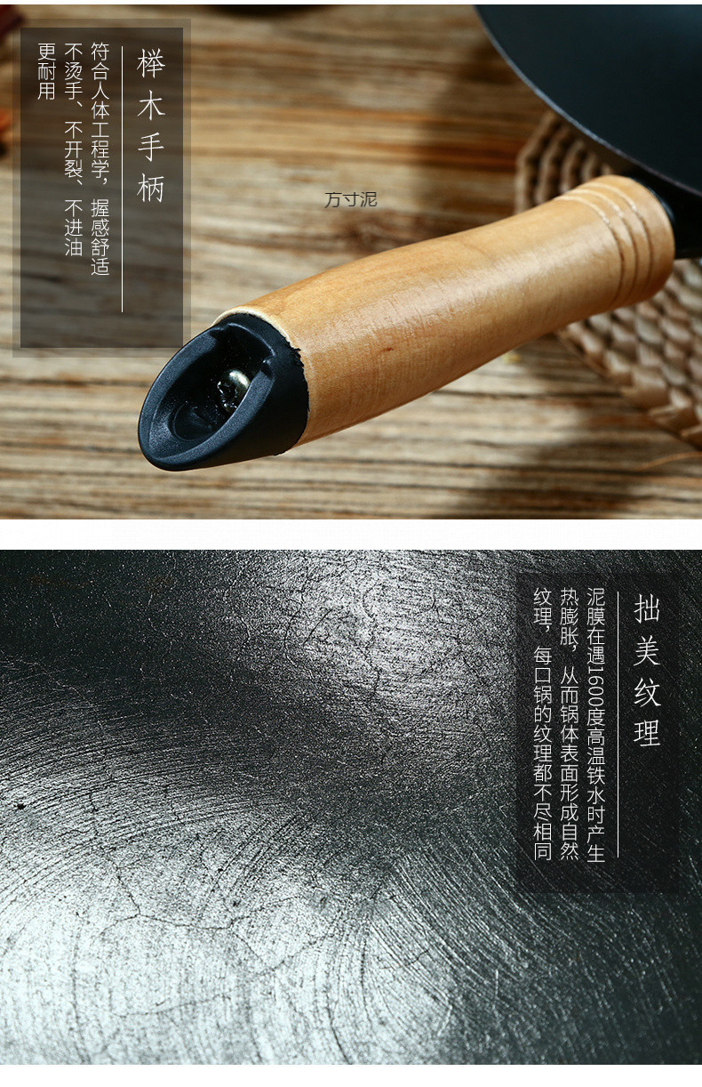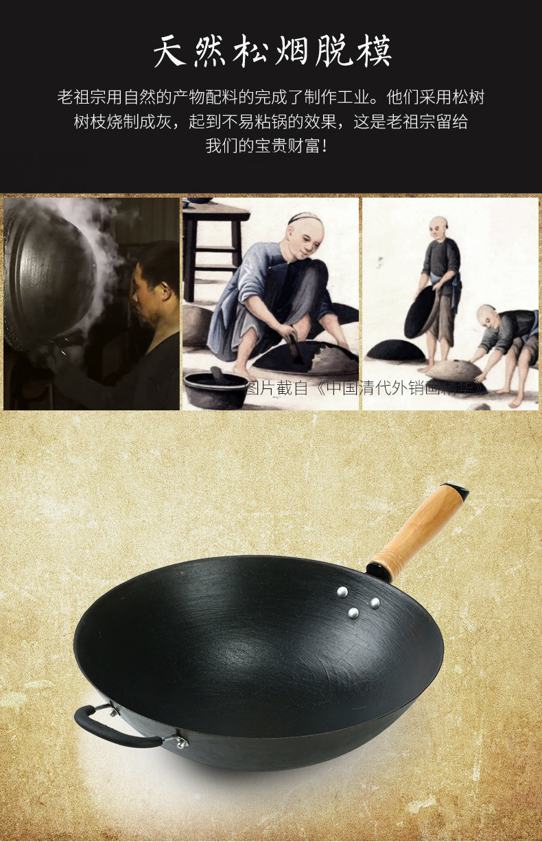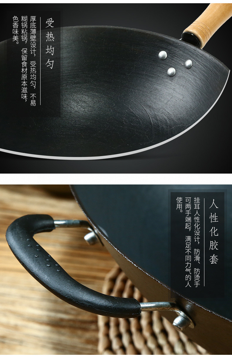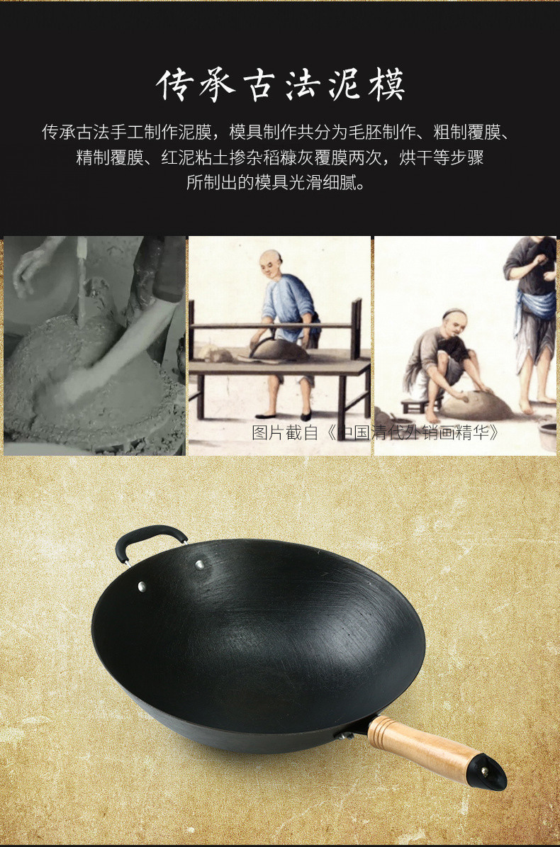 구식 원시 철 냄비 라운드 하단 워크 스틱 팬 전통적인 플랫 하단 유도 쿠커 가스 스토브 조리기구 공급 체인