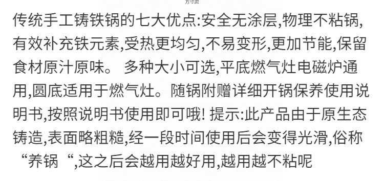 구식 원시 철 냄비 라운드 하단 워크 스틱 팬 전통적인 플랫 하단 유도 쿠커 가스 스토브 조리기구 공급 체인스토어 가기