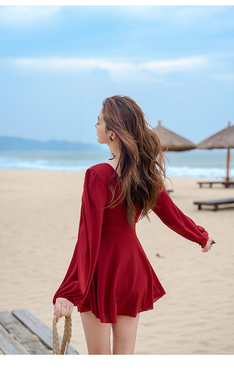2025 수영복 여성 여름 새 스타일 벨리 커버 슬림 화이트 신선하고 보수적 인 수영복 온천 학생 수영복스토어 가기