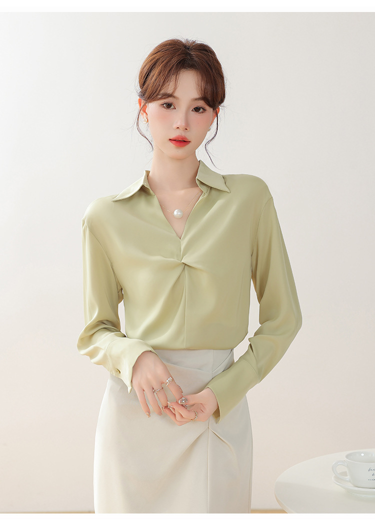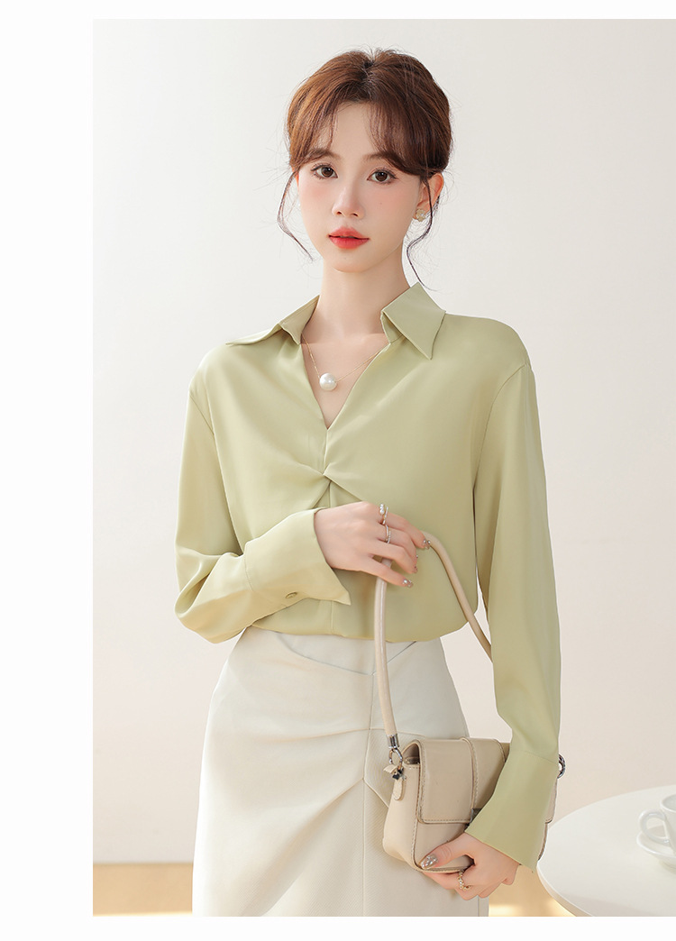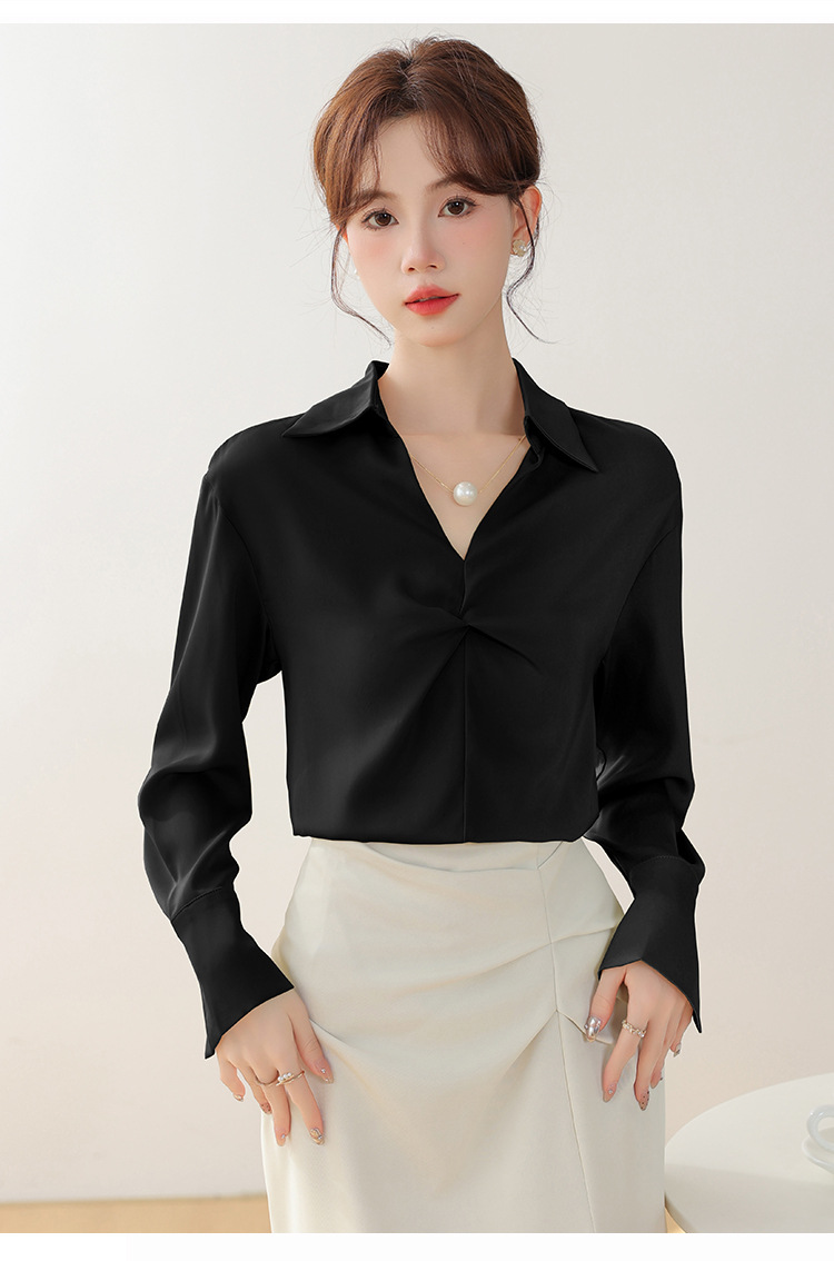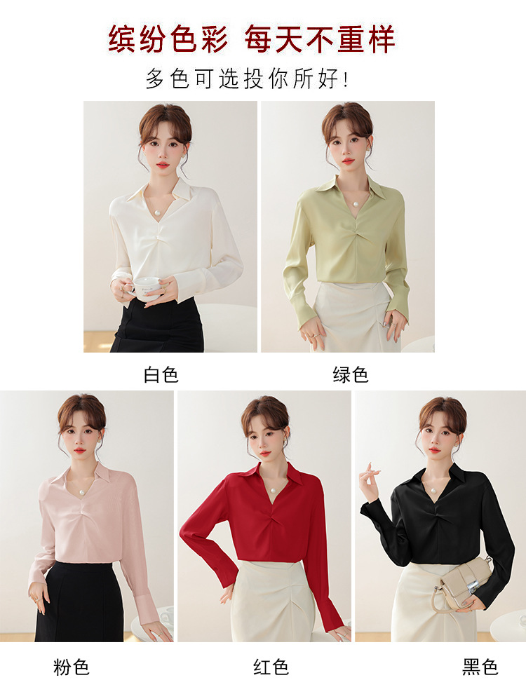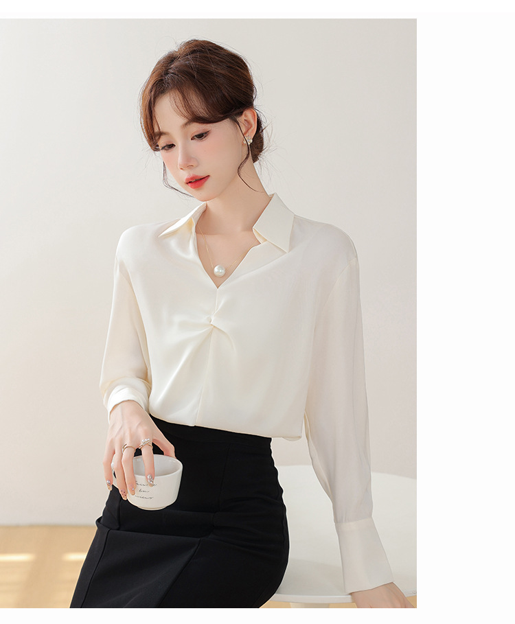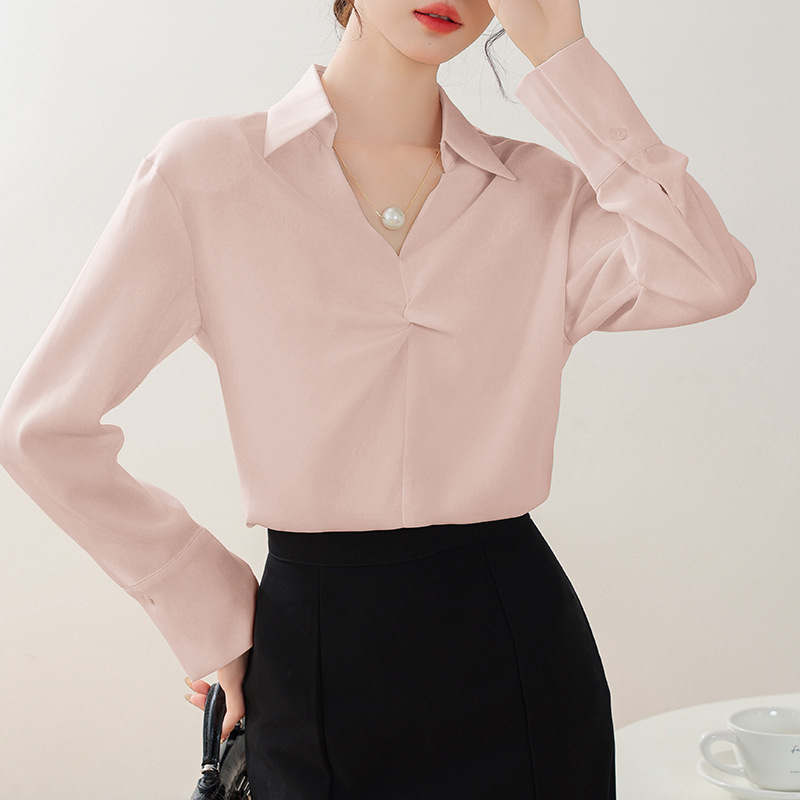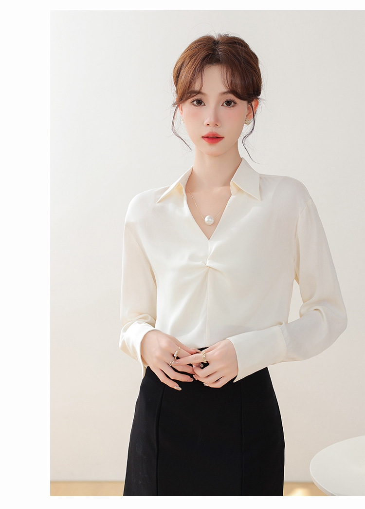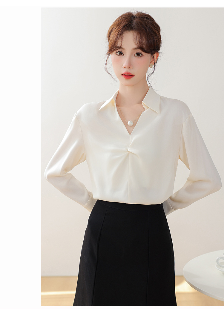프랑스 스타일 디자인 우아한 새틴 셔츠 여성의 봄 새로운 통근 슬리밍 진주 목걸이 전문 탑
