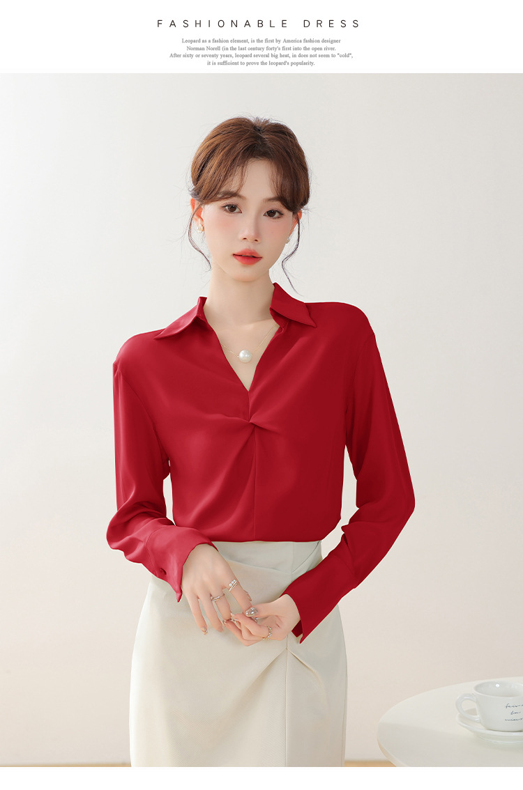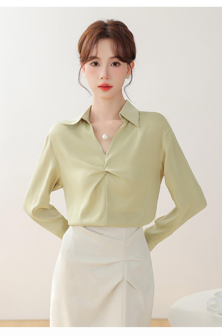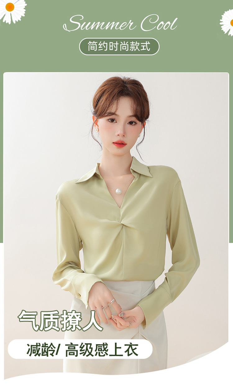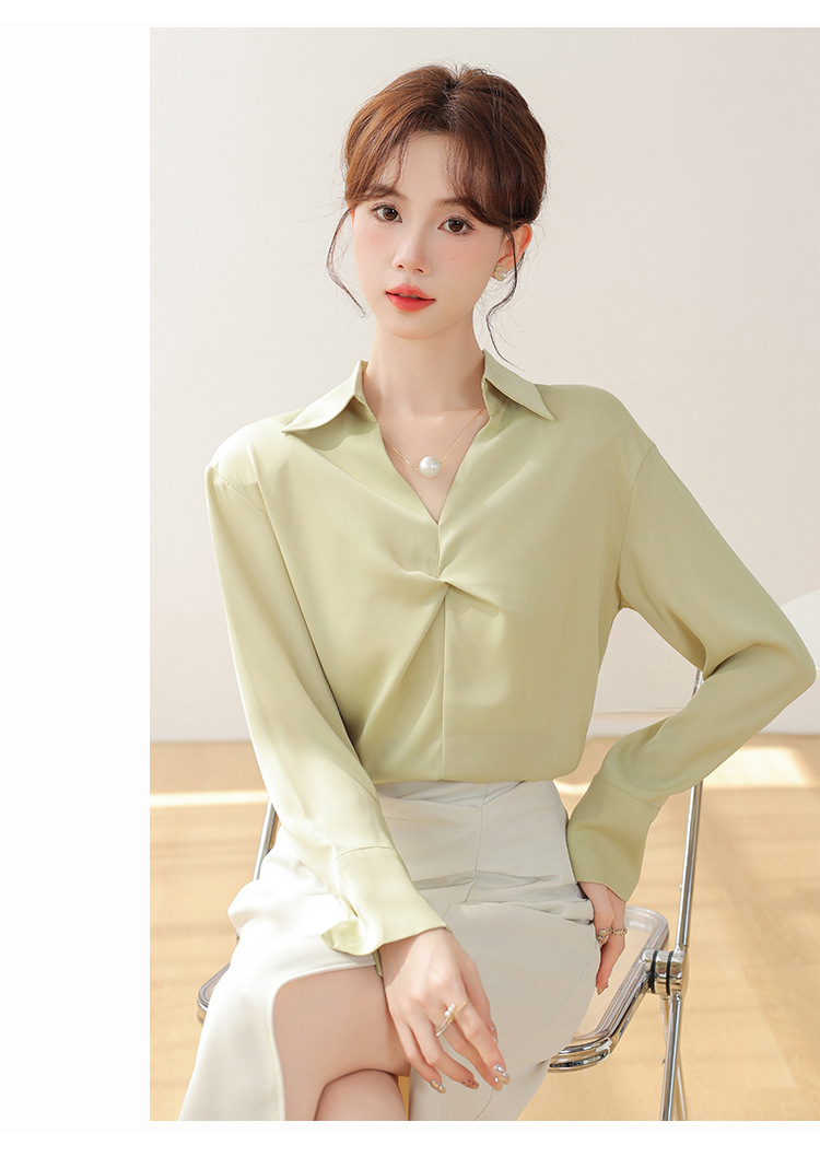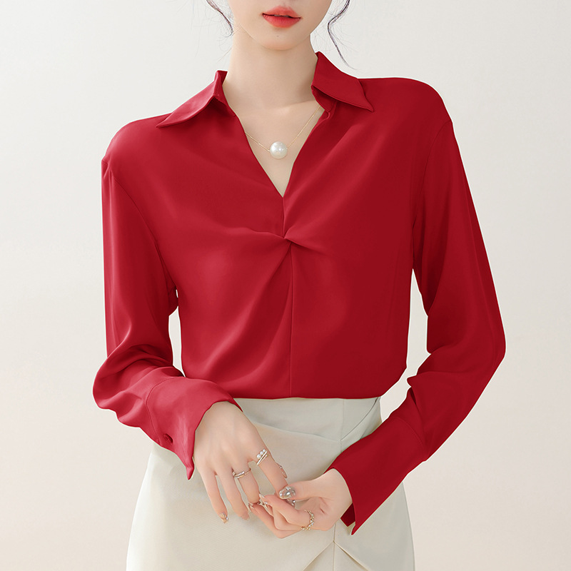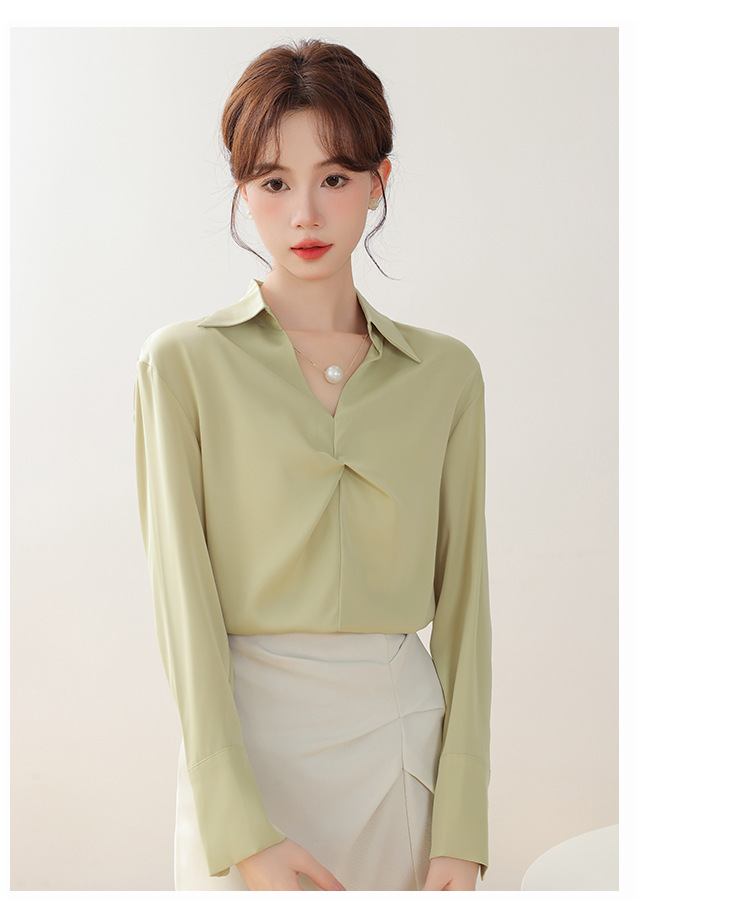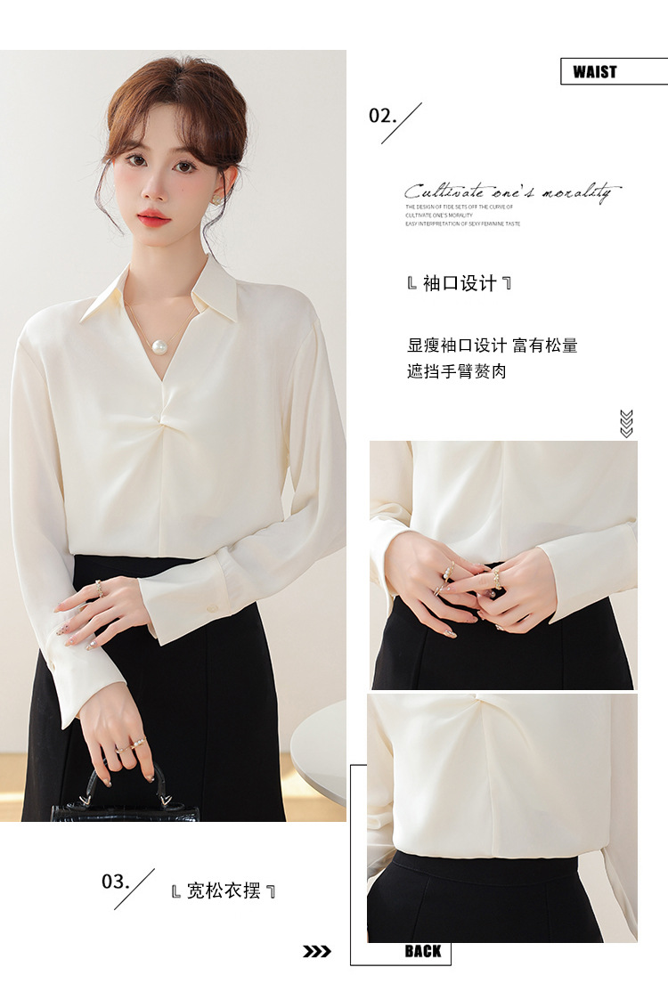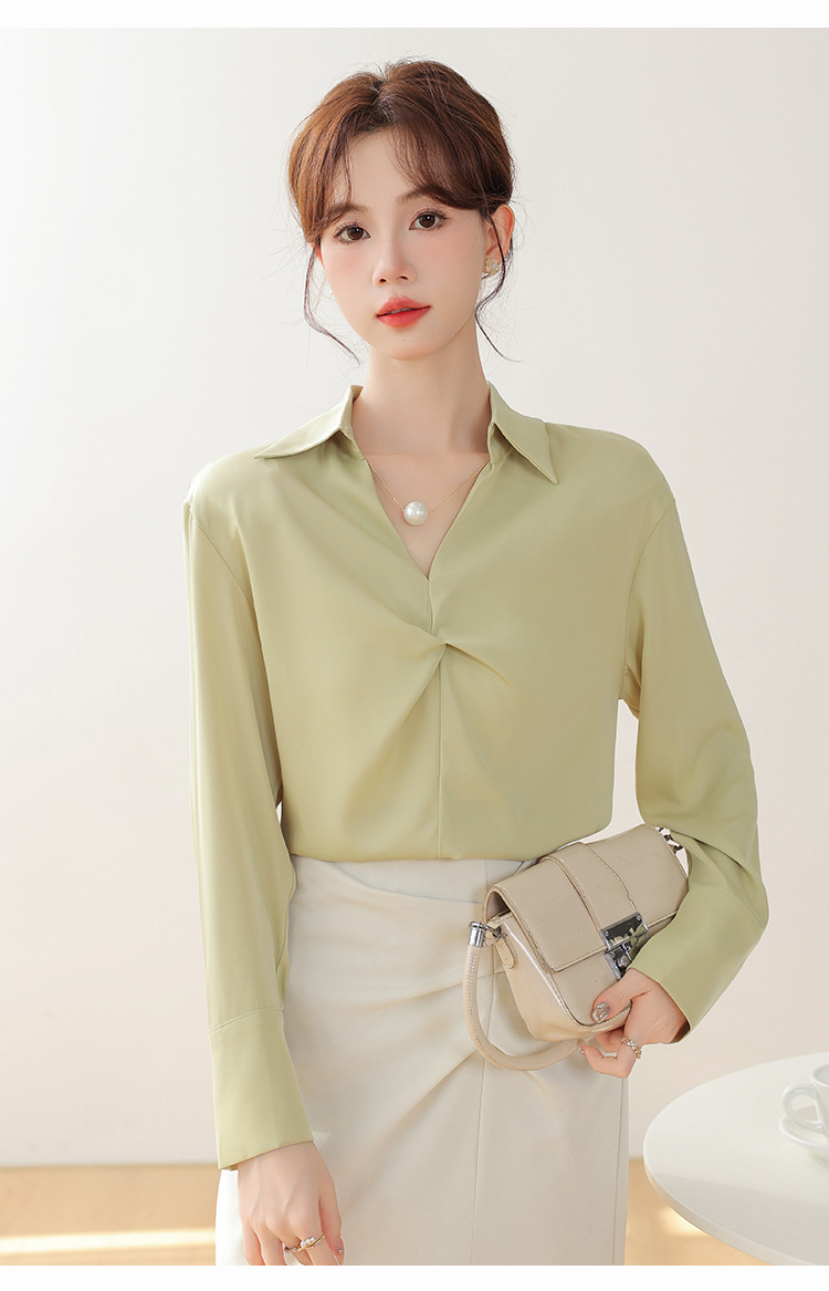 프랑스 스타일 디자인 우아한 새틴 셔츠 여성의 봄 새로운 통근 슬리밍 진주 목걸이 전문 탑