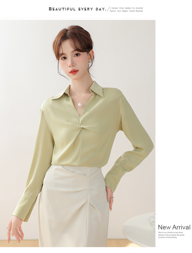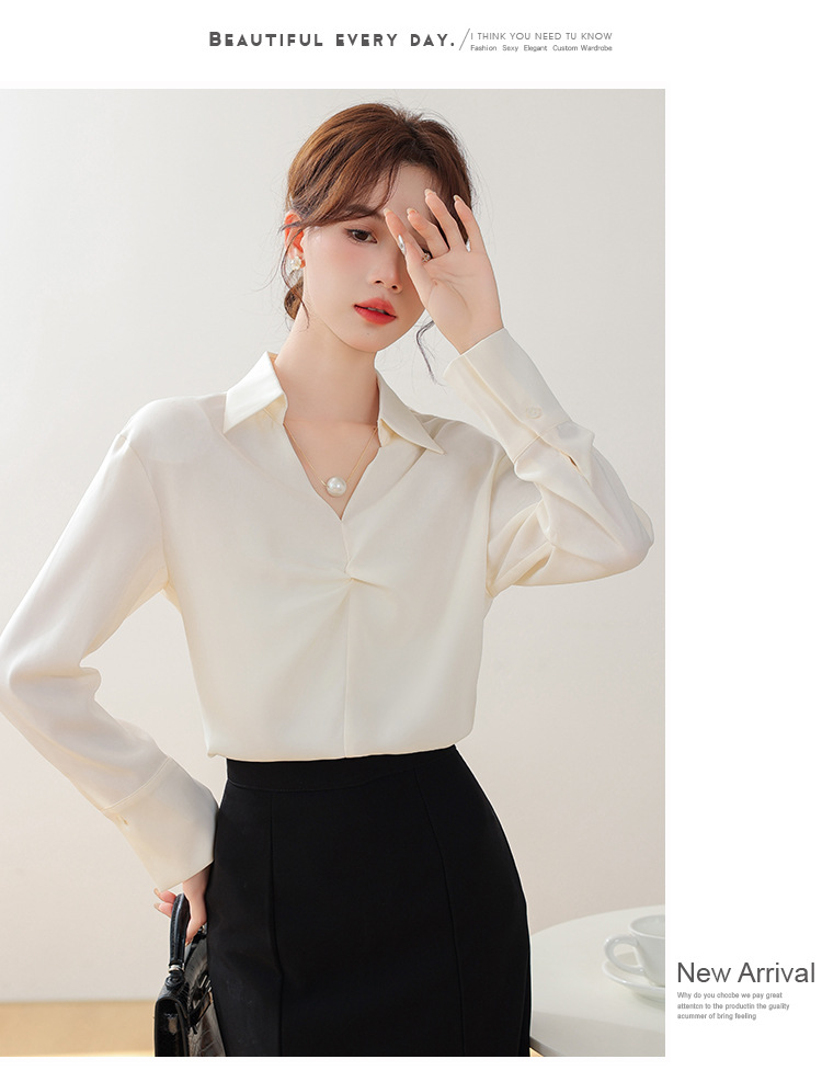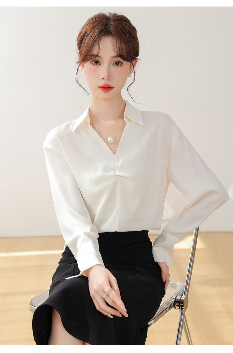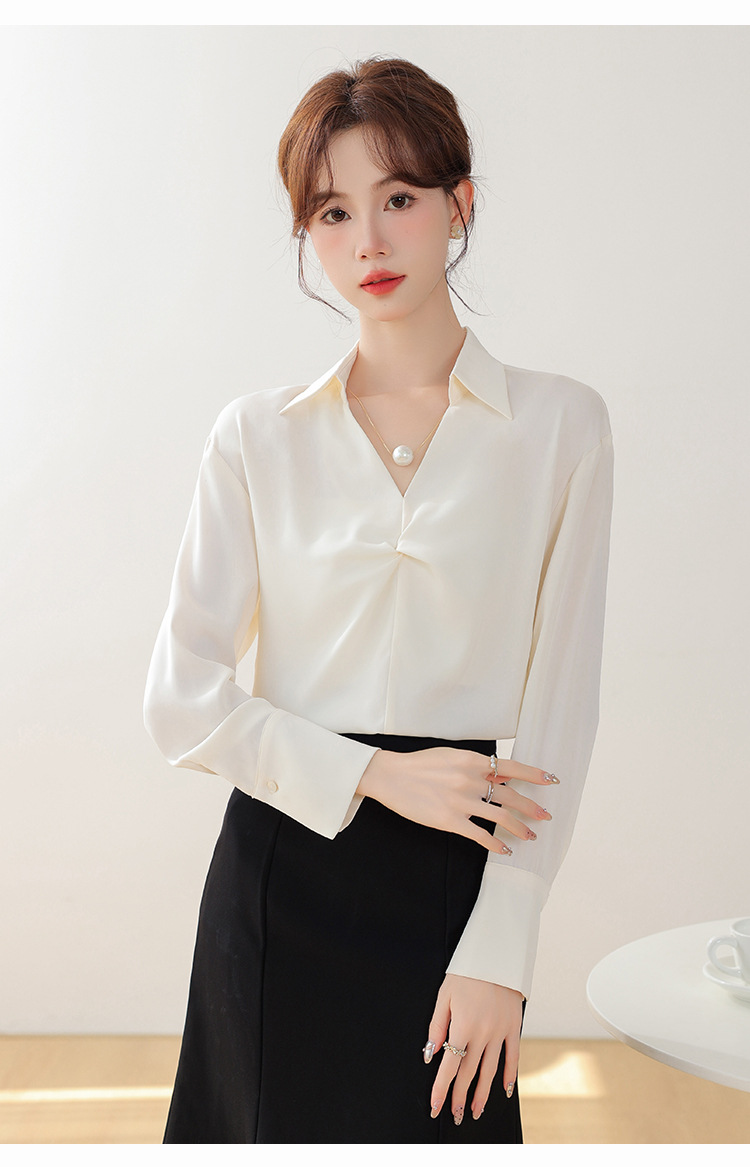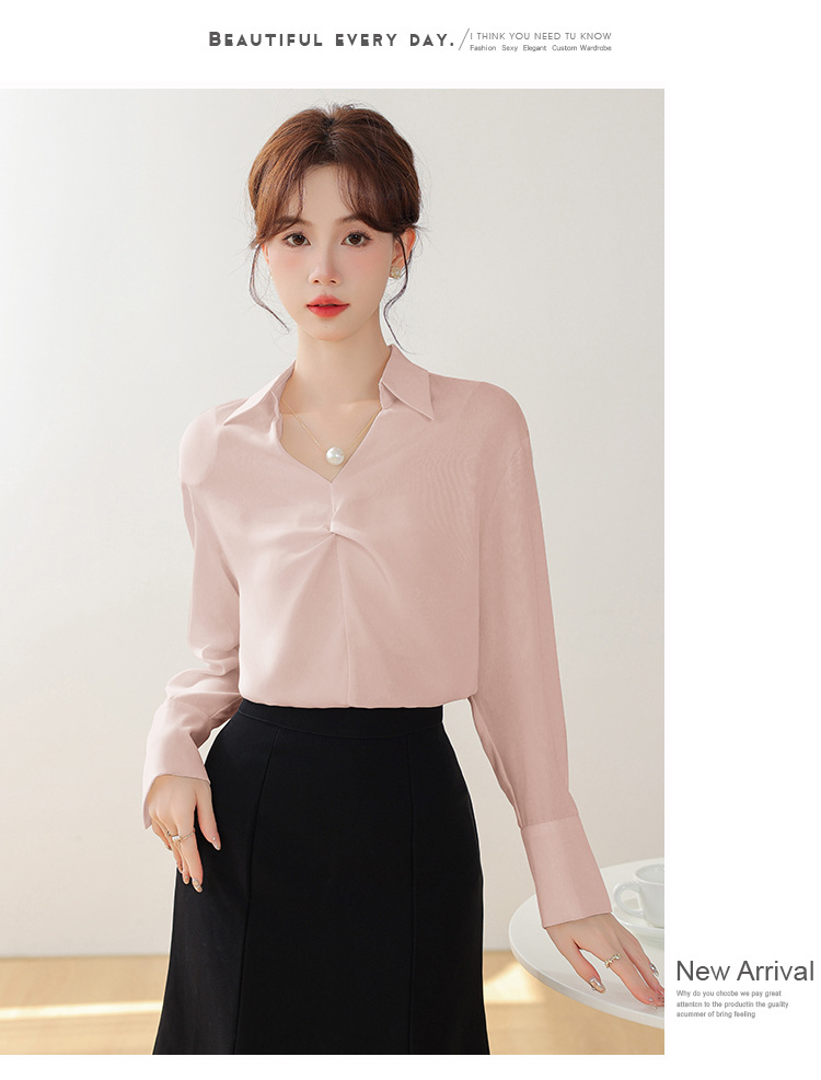 프랑스 스타일 디자인 우아한 새틴 셔츠 여성의 봄 새로운 통근 슬리밍 진주 목걸이 전문 탑스토어 가기