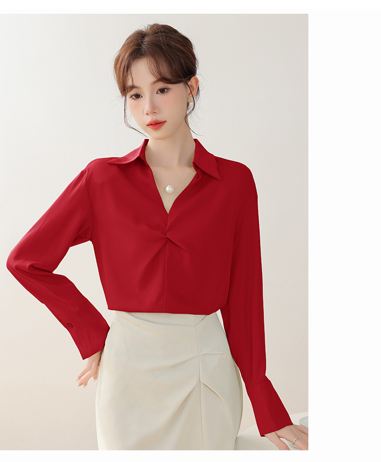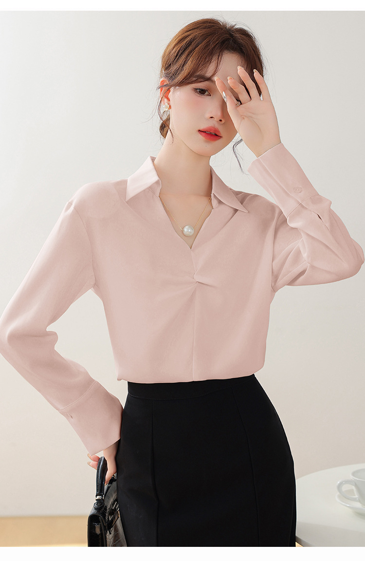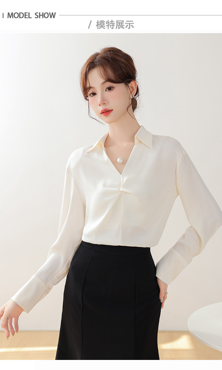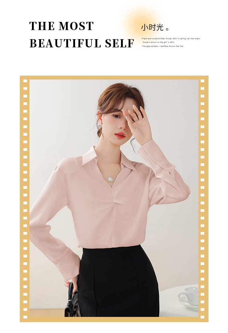 프랑스 스타일 디자인 우아한 새틴 셔츠 여성의 봄 새로운 통근 슬리밍 진주 목걸이 전문 탑스토어 가기