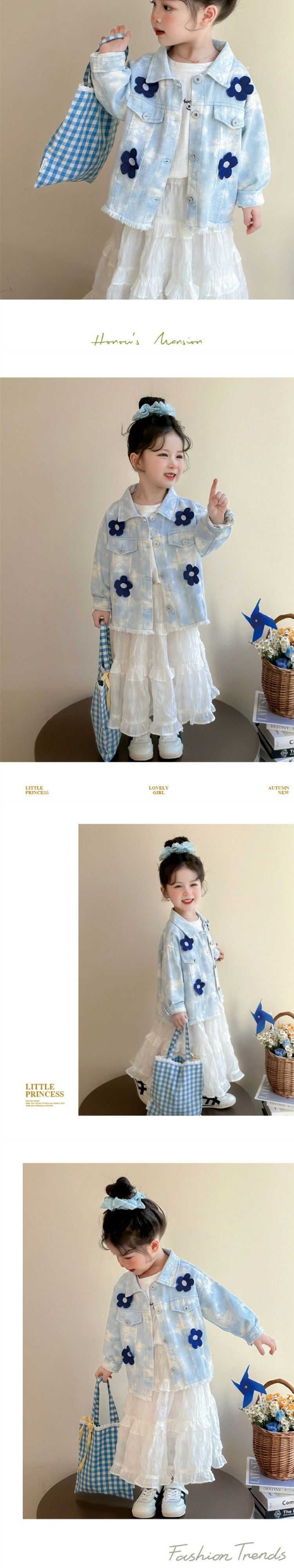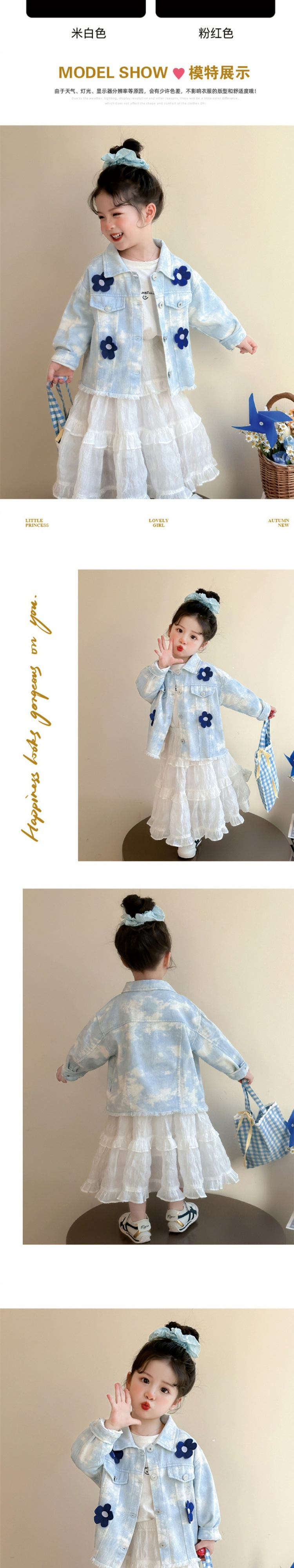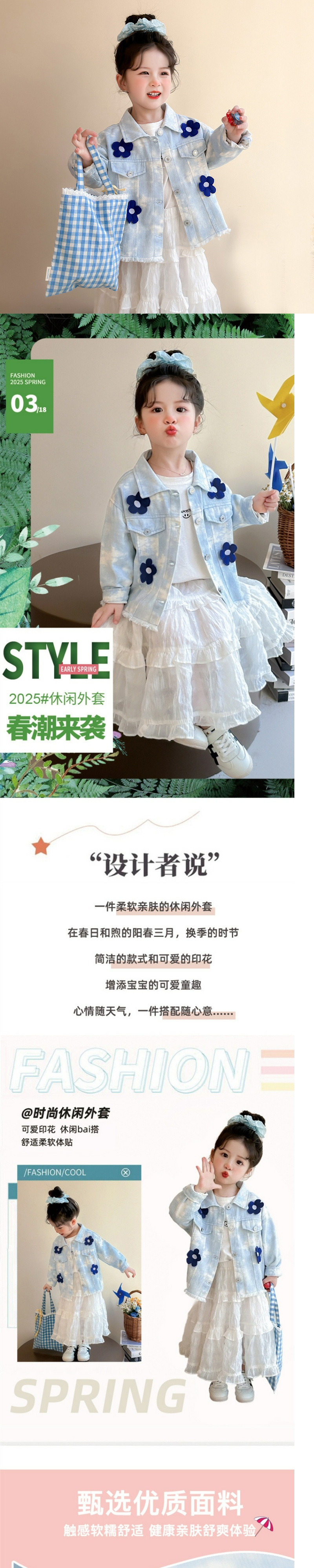 소녀 스티커 꽃 데님 코트 2025 봄 새로운 도착 한국 스타일 셔츠 어린이 패션 어린이 코트스토어 가기