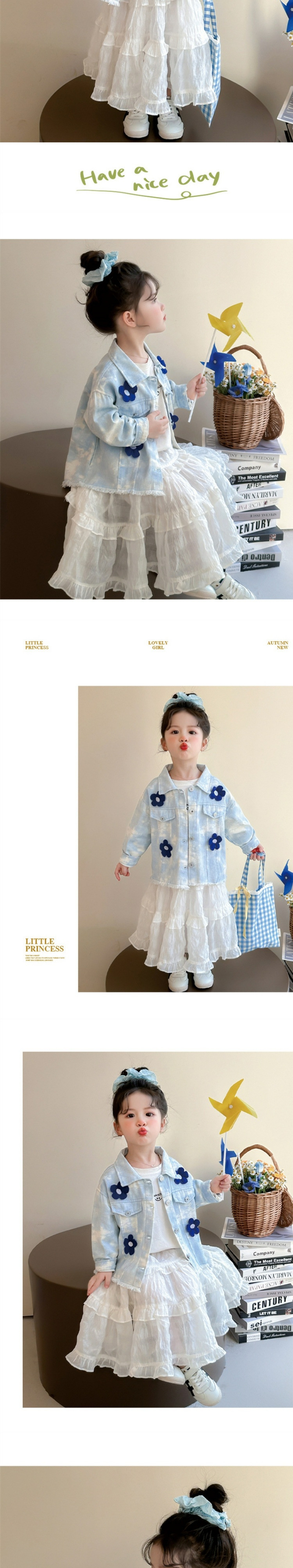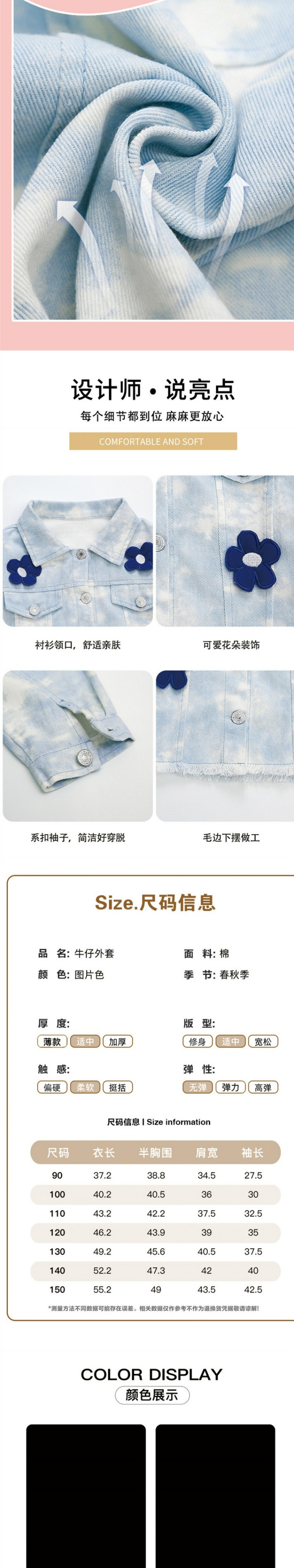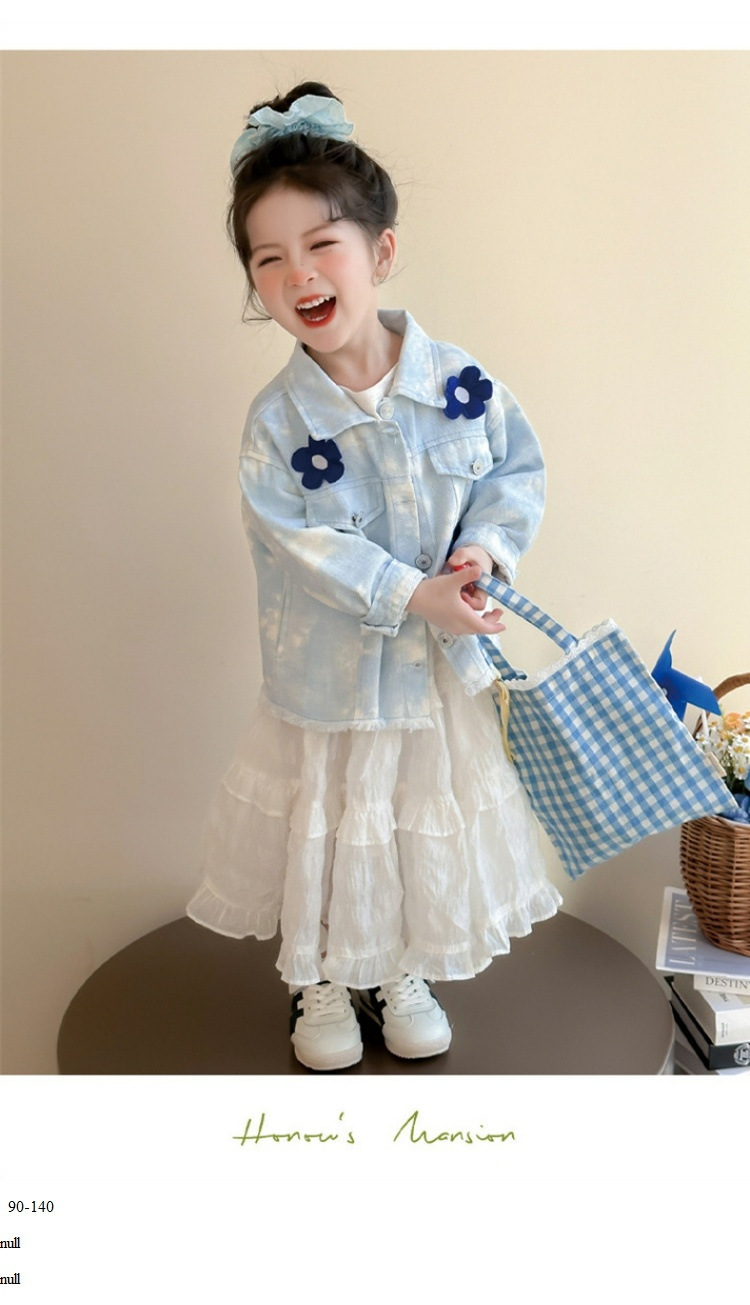 소녀 스티커 꽃 데님 코트 2025 봄 새로운 도착 한국 스타일 셔츠 어린이 패션 어린이 코트스토어 가기
