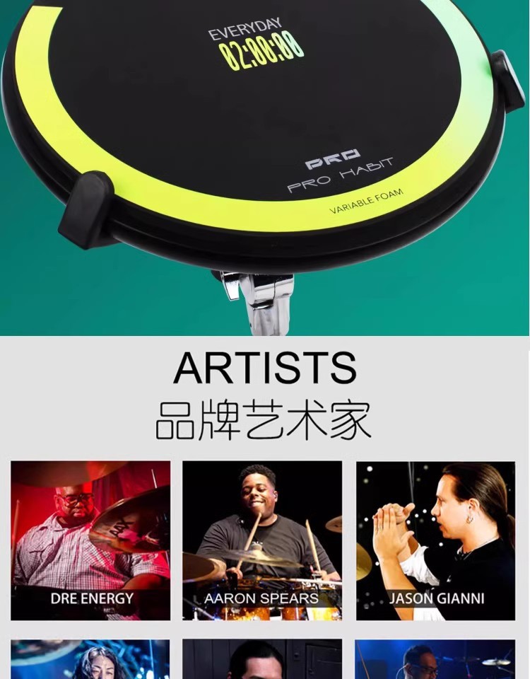 멍청한 드럼 세트 12 인치 드럼 세트 벙어리 드럼 패드 초보자 서브 드럼 패드 메트로놈 연습 드럼 전문 홈스토어 가기