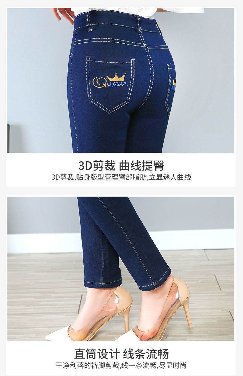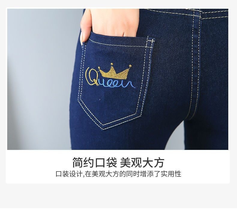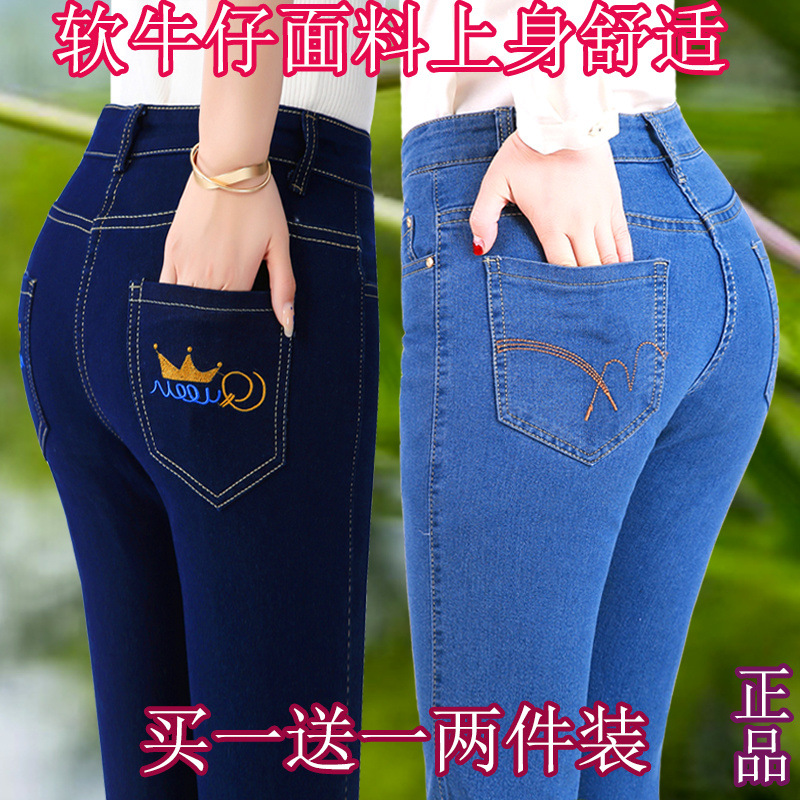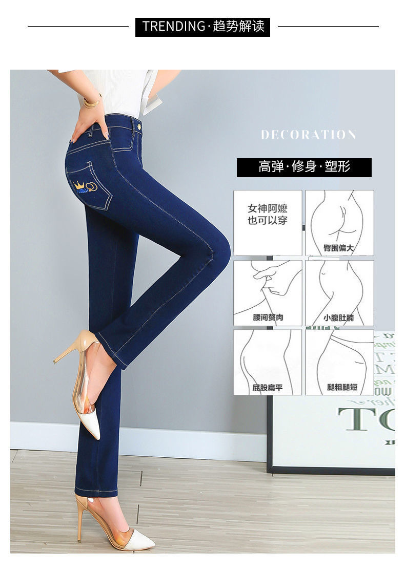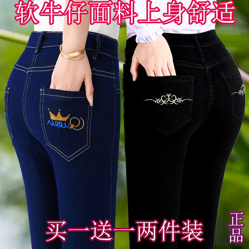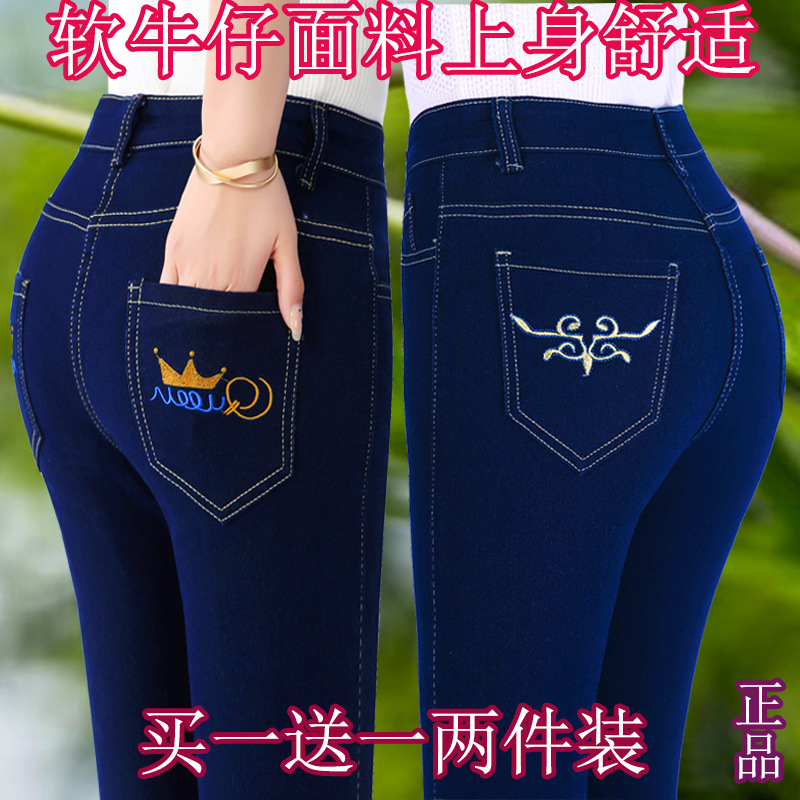 봄 높은 허리 데님 여성용 바지 스포츠 캐주얼 데님 부드러운 원단 상체 편안한 중년 엄마 캐주얼 바지