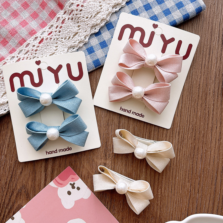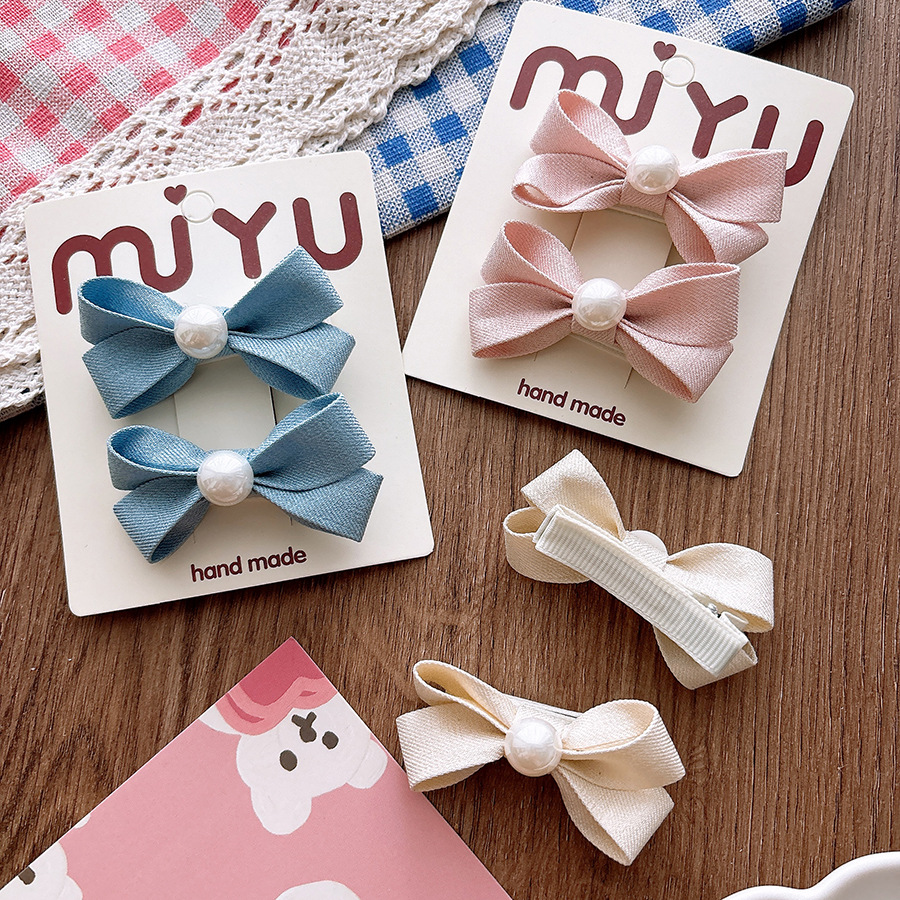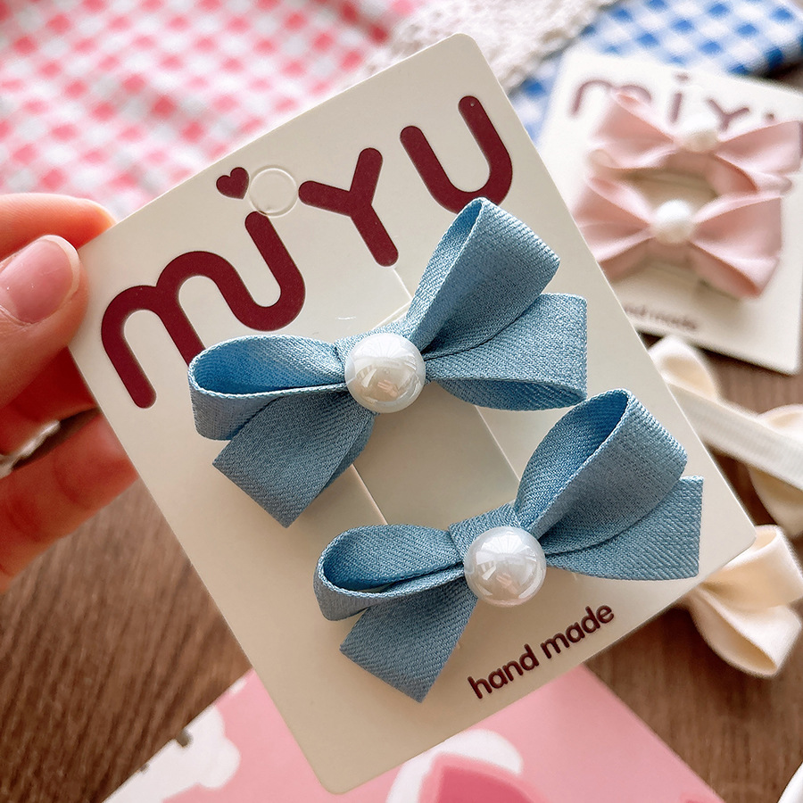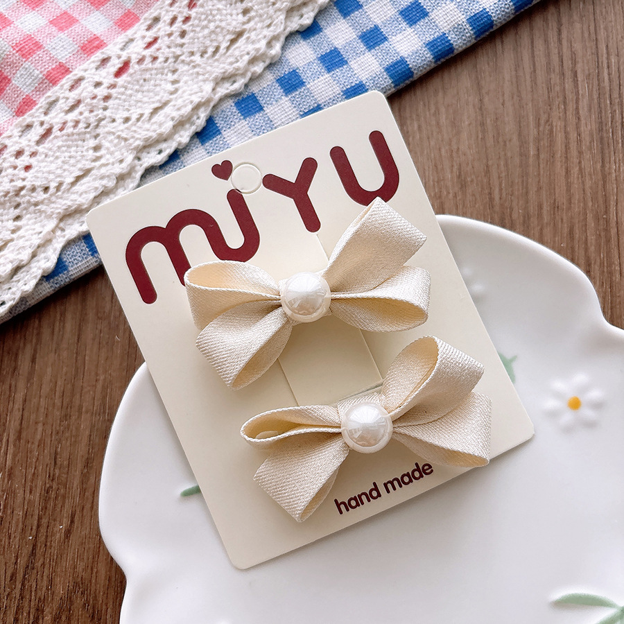 한국 스타일 더블 레이어 달콤한 활 모든 것을 포함하는 헤어핀 소녀 우아한 펄 사이드 프레스 클립 올 매치 뱅 헤어핀