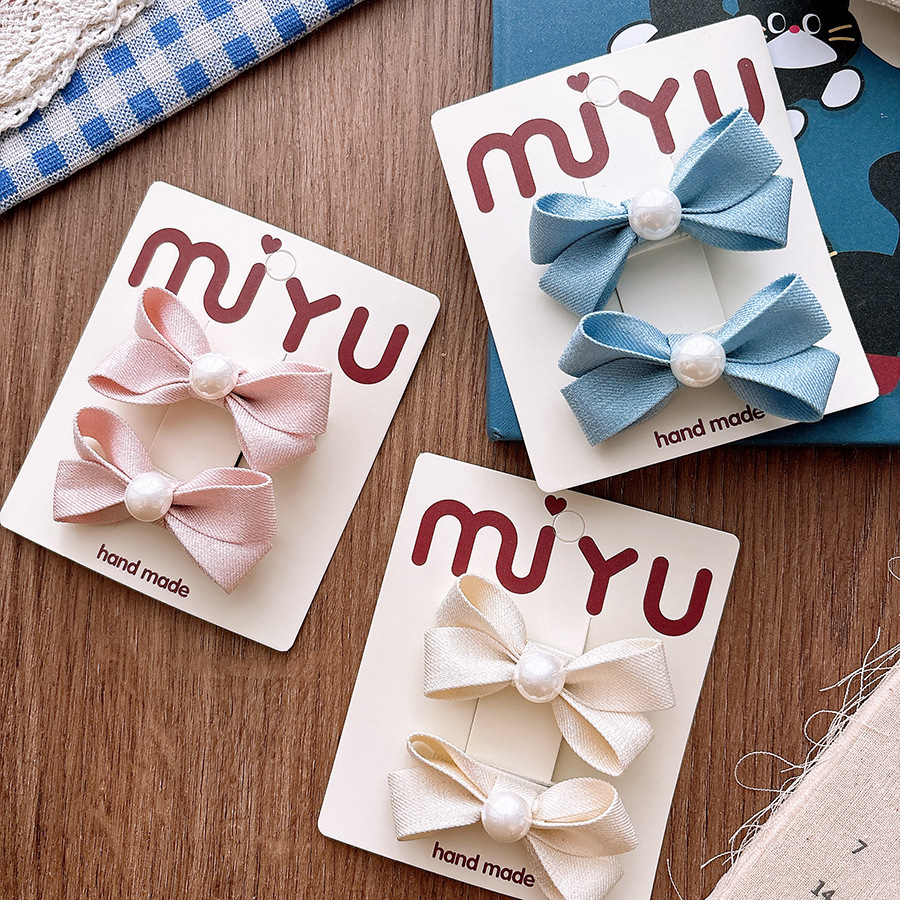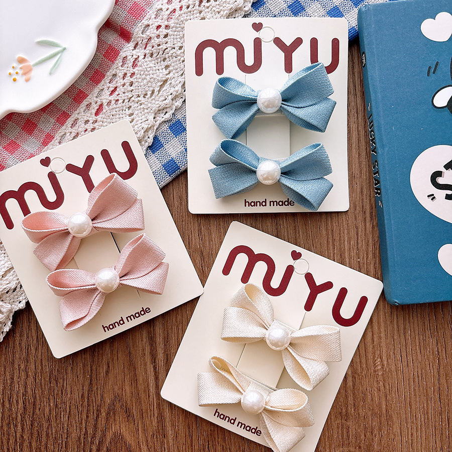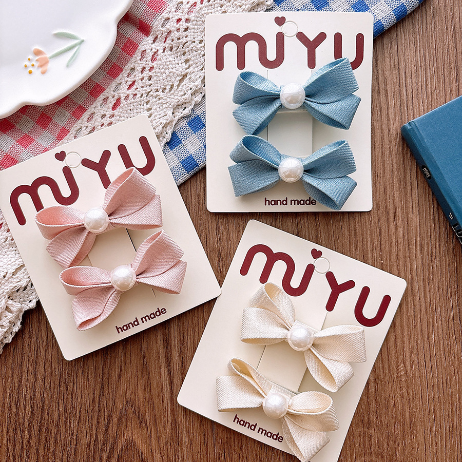 한국 스타일 더블 레이어 달콤한 활 모든 것을 포함하는 헤어핀 소녀 우아한 펄 사이드 프레스 클립 올 매치 뱅 헤어핀스토어 가기