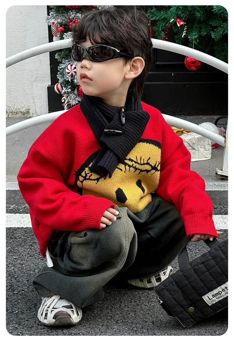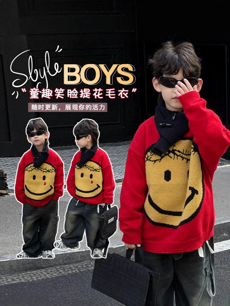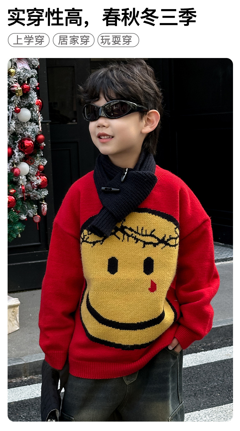 빛나는 성장 소년 스웨터 2025 새로운 어린이 니트웨어 스웨터 중소 소년 최고 트렌디스토어 가기