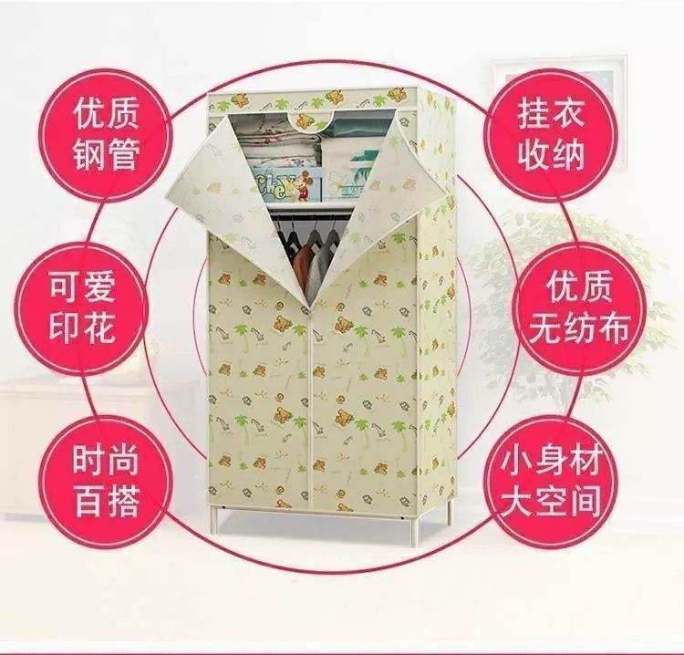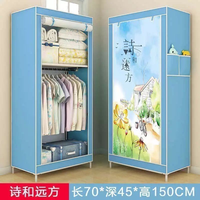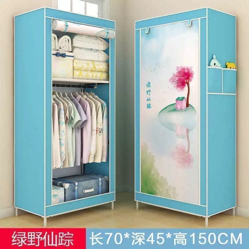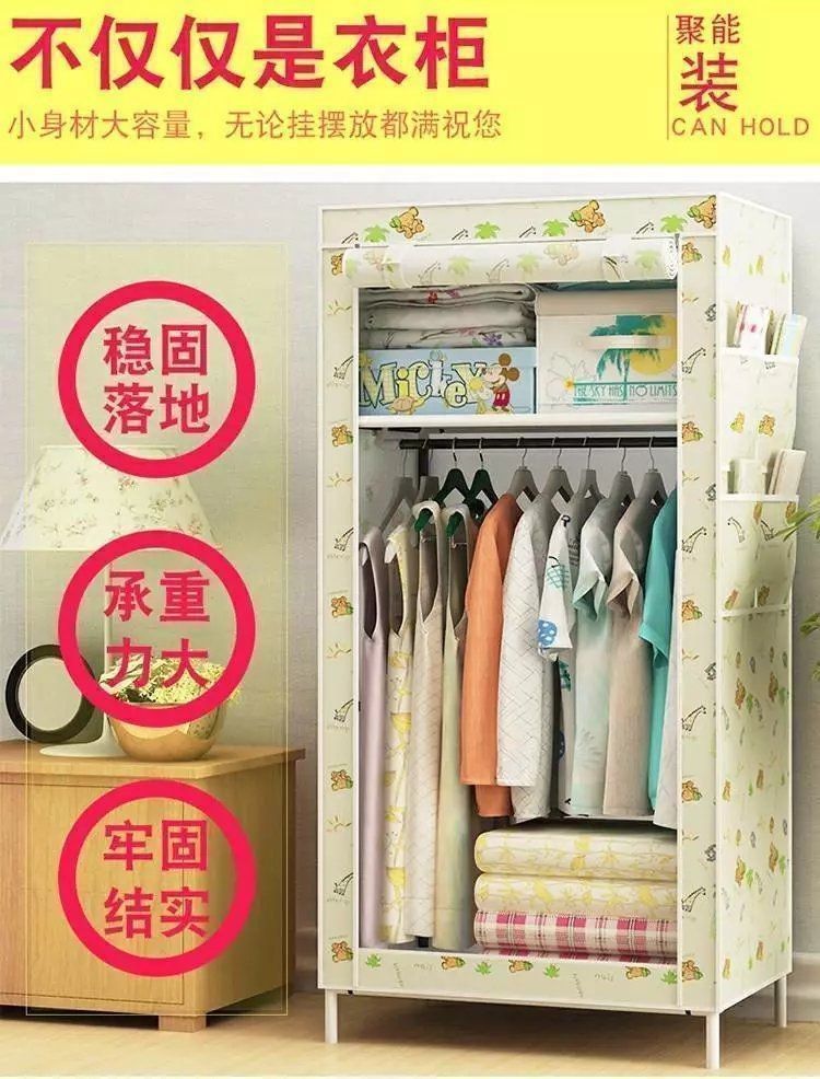 전체 캐비닛 지퍼 강화 스몰 사이즈 스틸 프레임 옷장 옷장 강철 파이프 단일 옥스포드 천 간단한 캔버스 거친 천스토어 가기