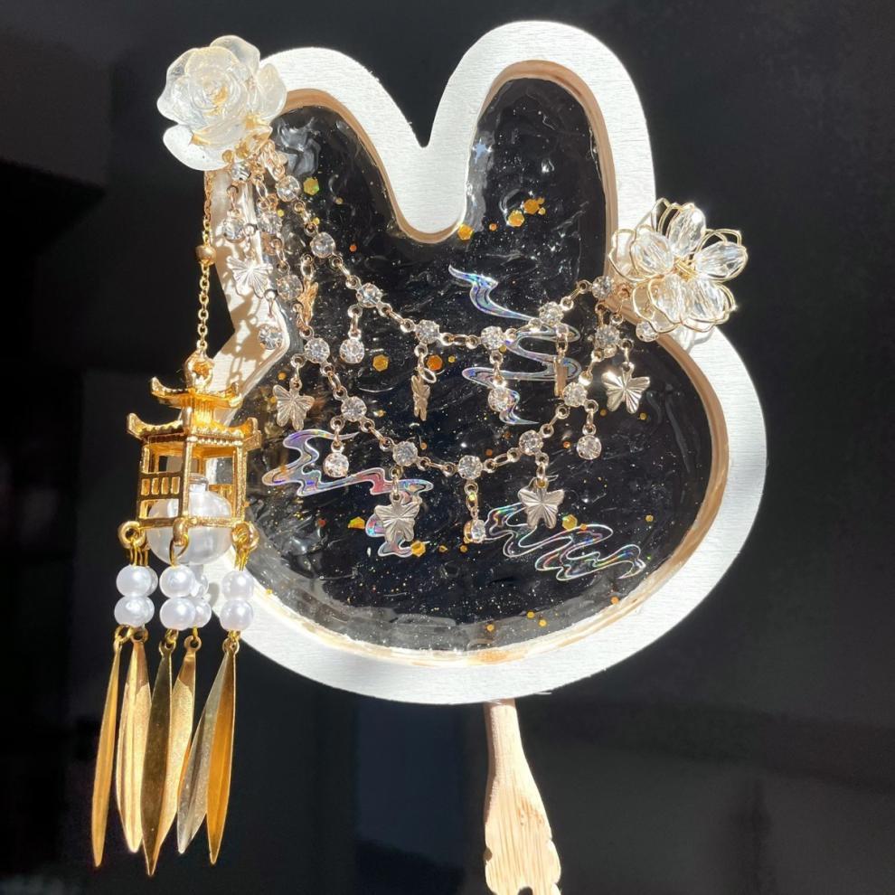 워터 팬 웨딩 팬 그룹 팬 실크 팬 솔리드 우드 팬 프레임 해골 중국 고대 스타일 수제 접착제 드롭 luncai스토어 가기
