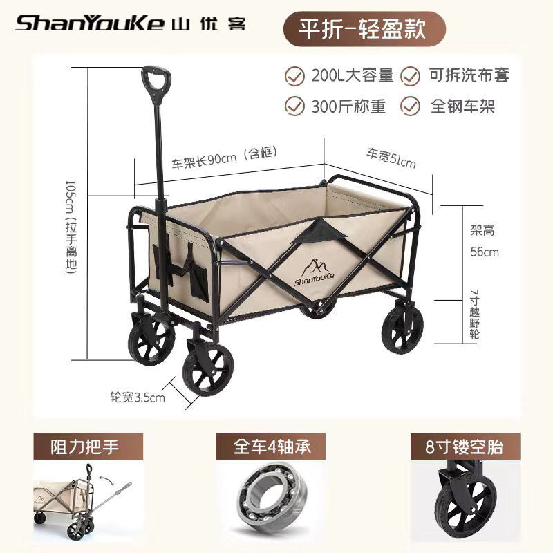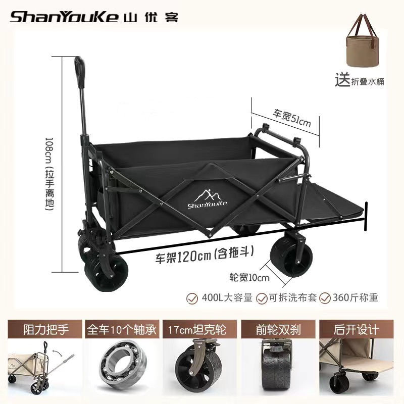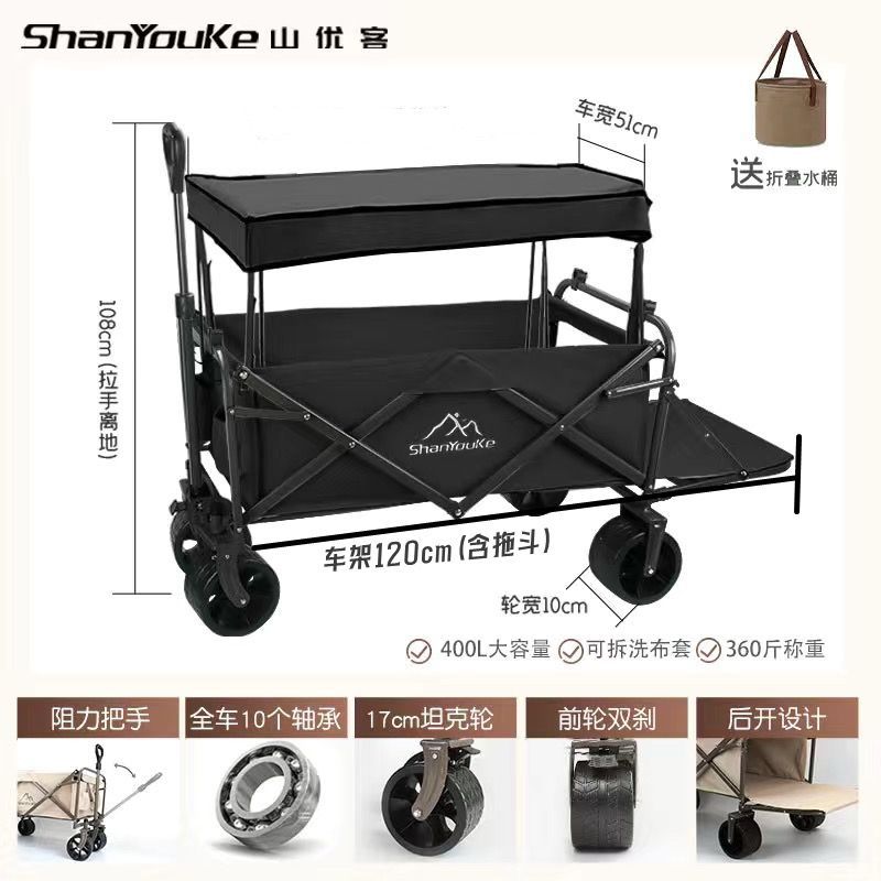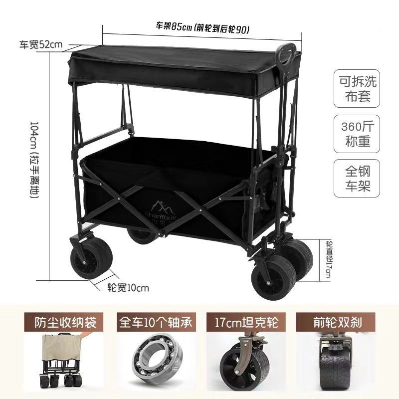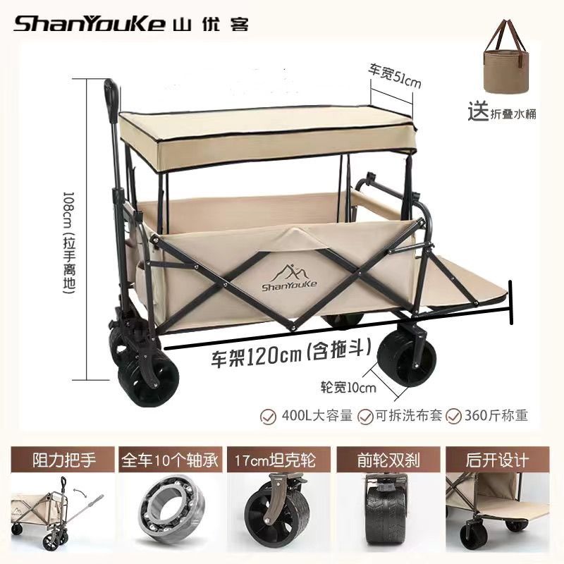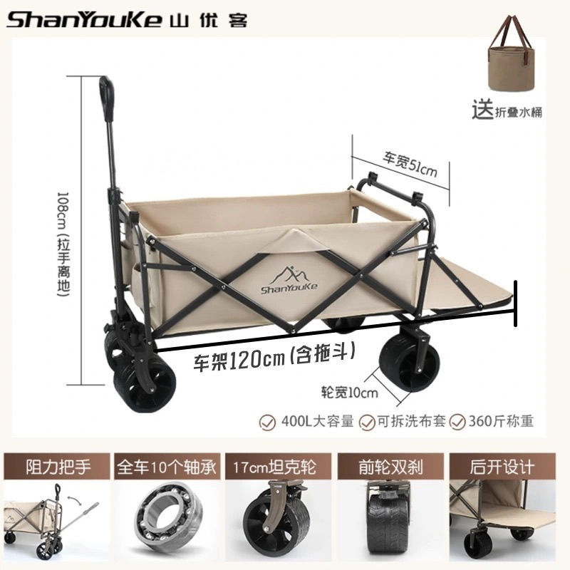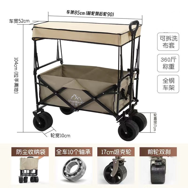 • 카트 + 차양 - 10inch 카키색 탱크 트레일러 + 10축 + 수납용 이중 브레이크