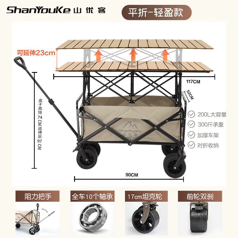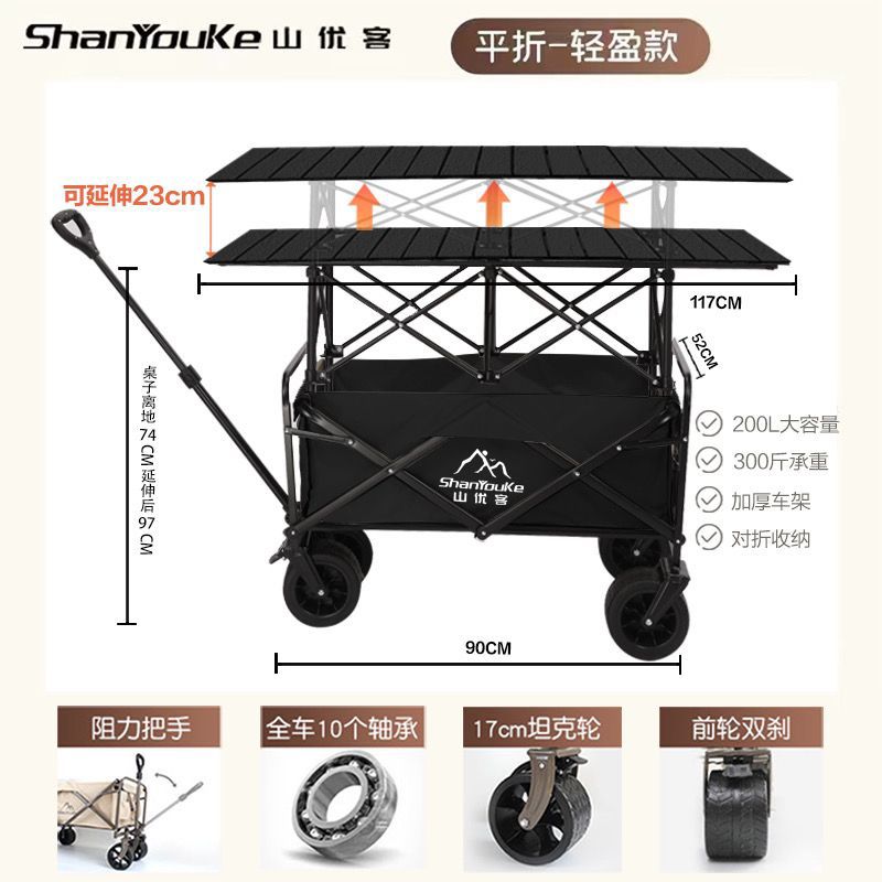 [스톨] 캠프카 매점 매점 카트 트롤리 접이식 야외 캠프 캠핑의 높이를 올립니다.