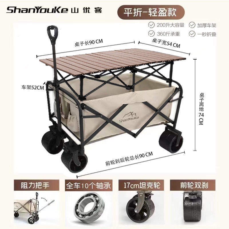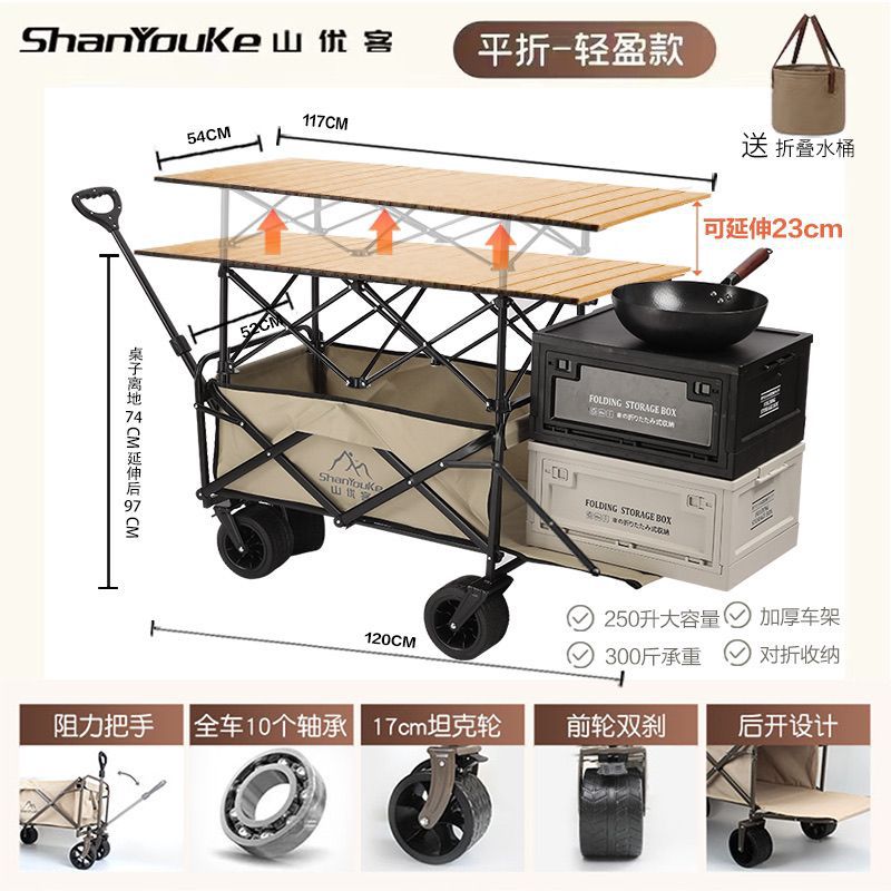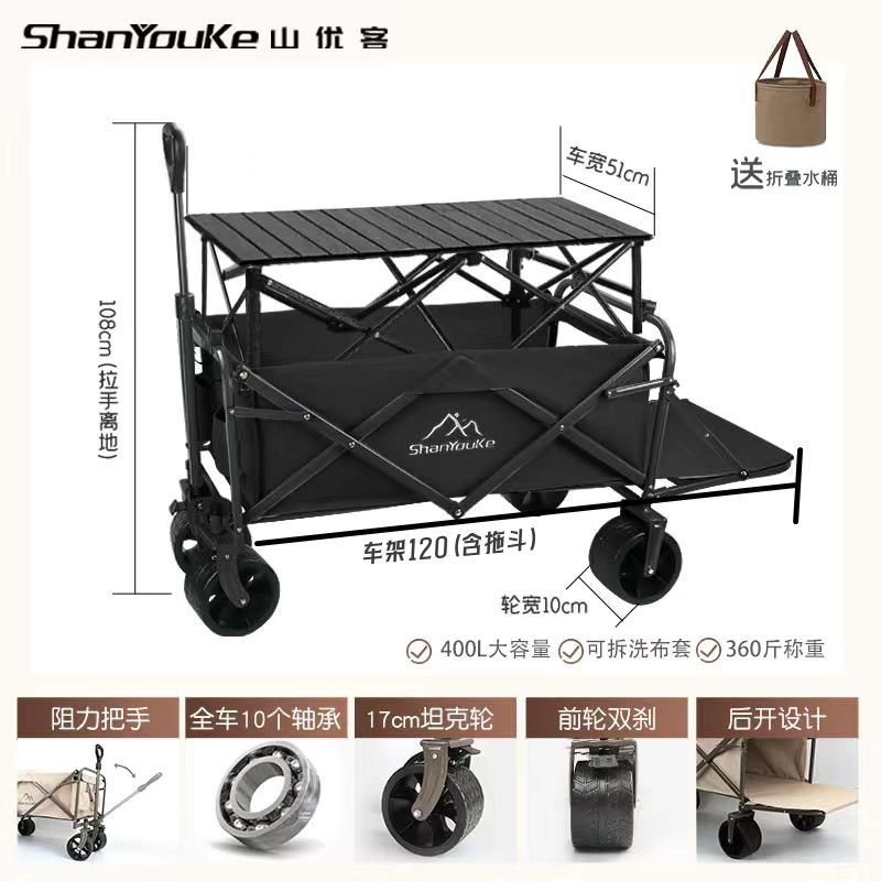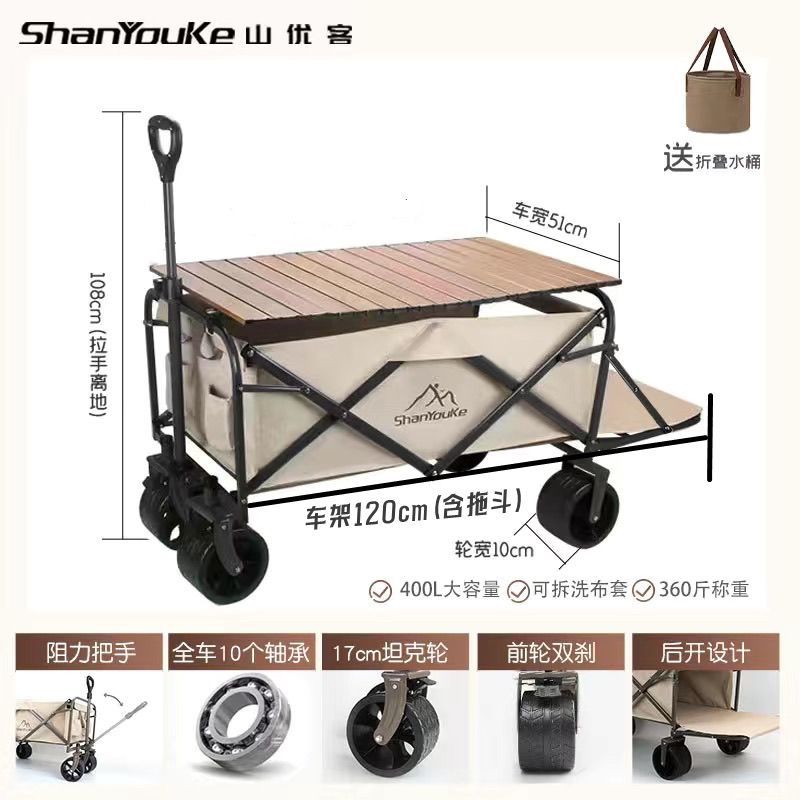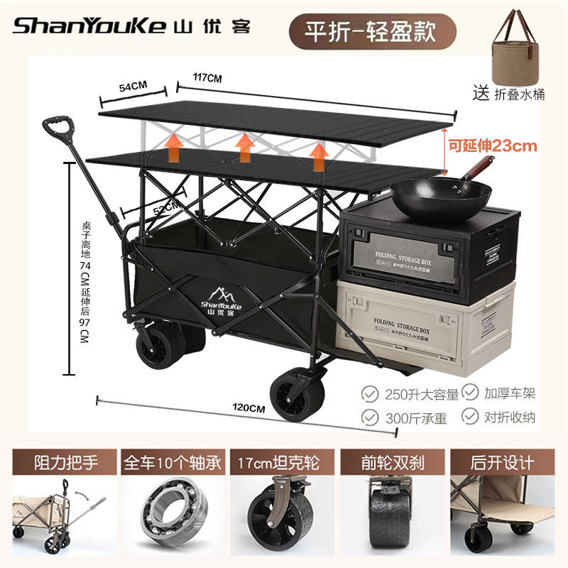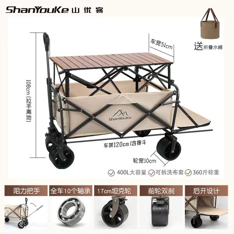 • 카트 + 높이고 길게 테이블 117 + 타일 조각 [3 용도 - 10inch 카키색 탱크 드래그 버킷 + 10 축 + 보관 이중 브레이크