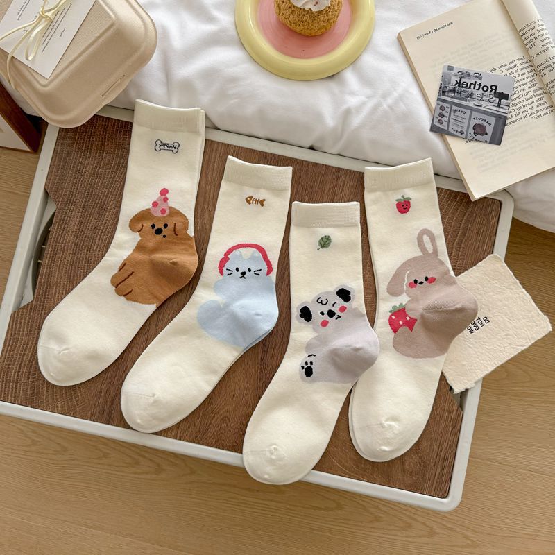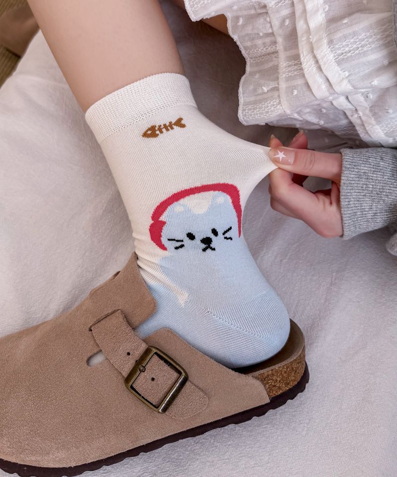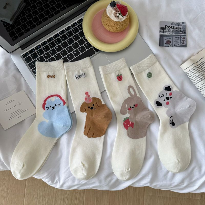 봄과 여름 새로운 올인원 기계 귀여운 뼈없는 메쉬 튜브 양말 한국 버전 패션 학술 스타일 올 매치 여성면 양말 사계절