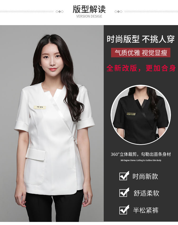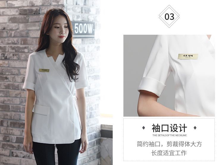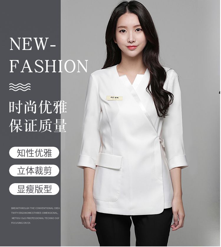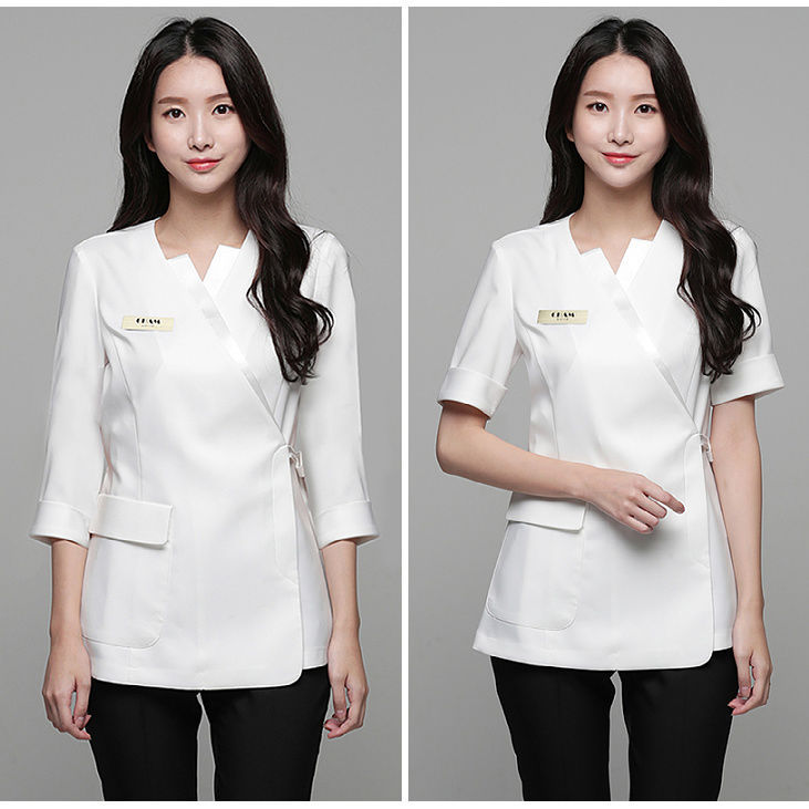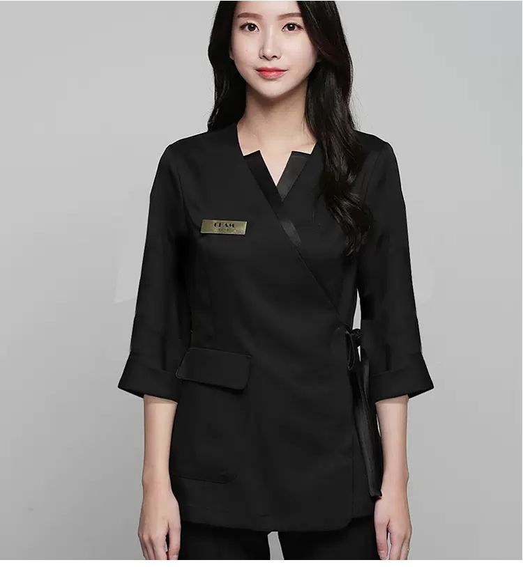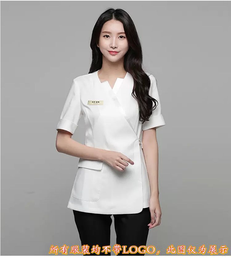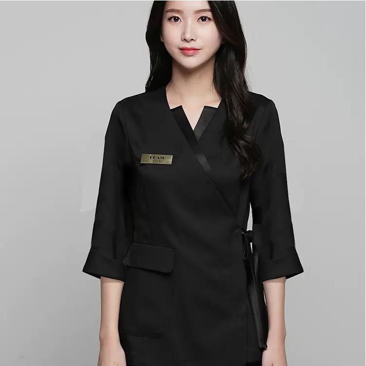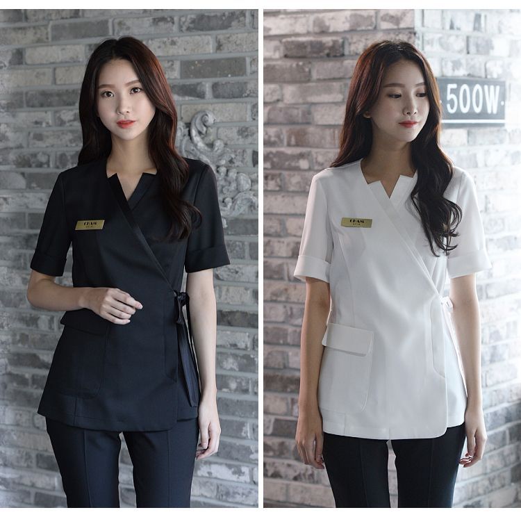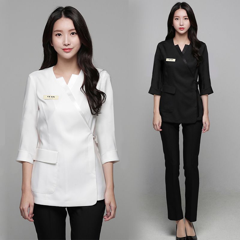 하이 엔드 뷰티 살롱 미용사 작업복 여성 블랙 스파 건강 살롱 스킨 매니저 화이트 탑 비즈니스 착용스토어 가기