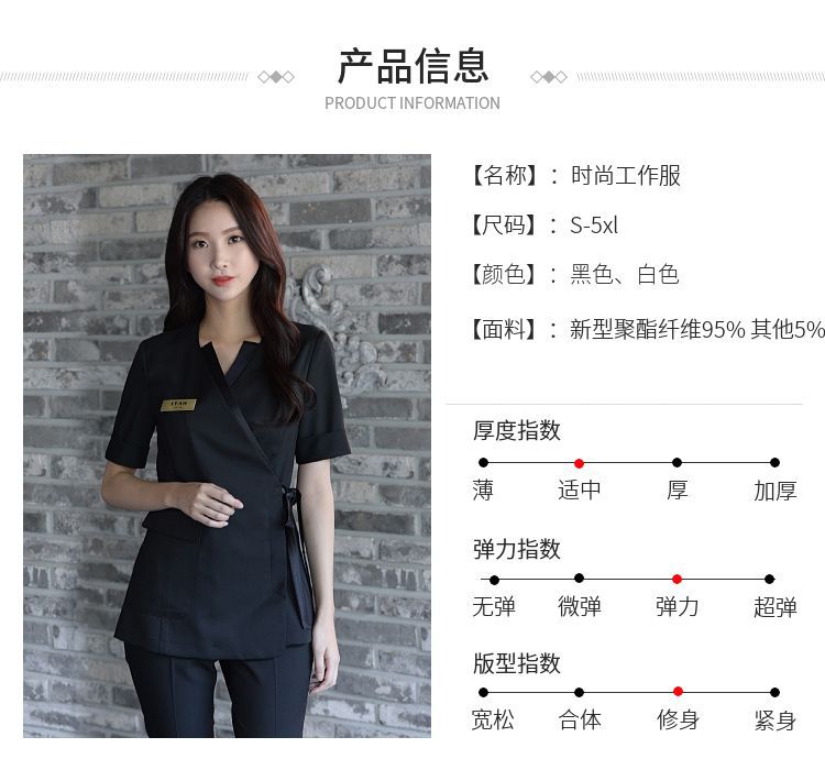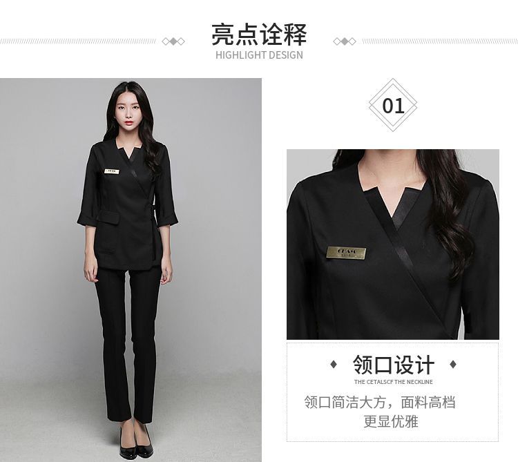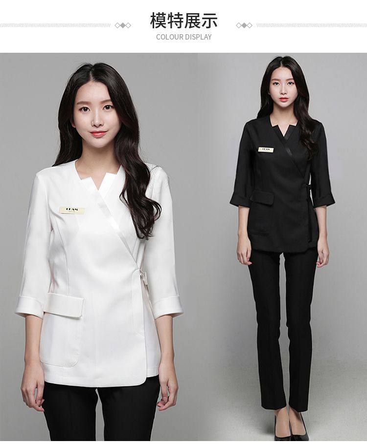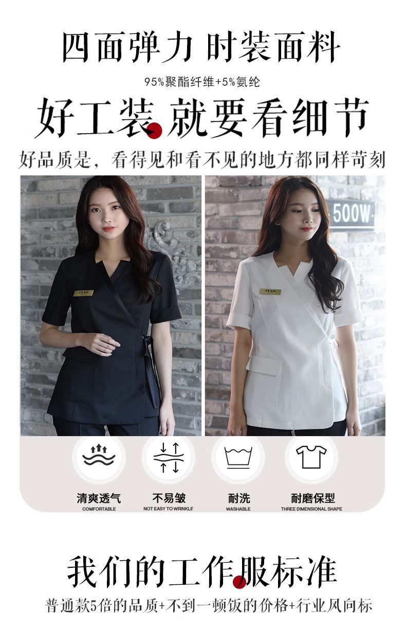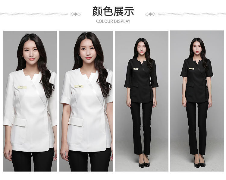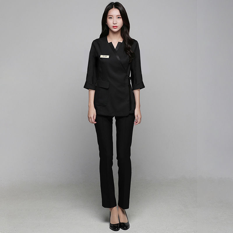 하이 엔드 뷰티 살롱 미용사 작업복 여성 블랙 스파 건강 살롱 스킨 매니저 화이트 탑 비즈니스 착용