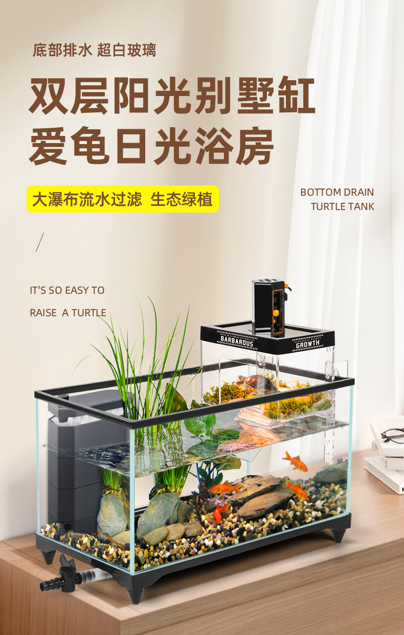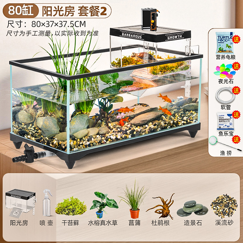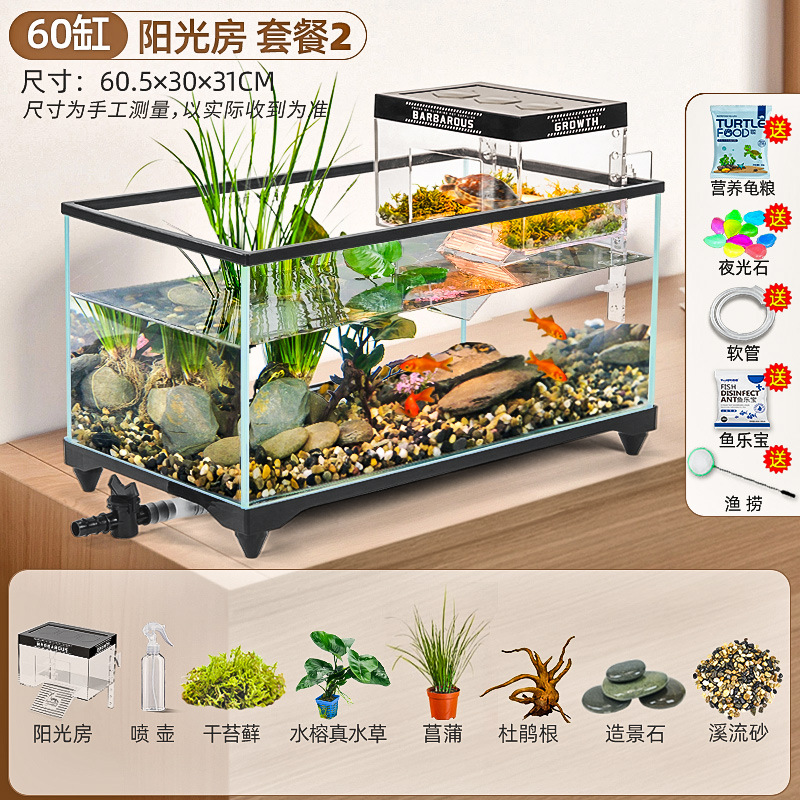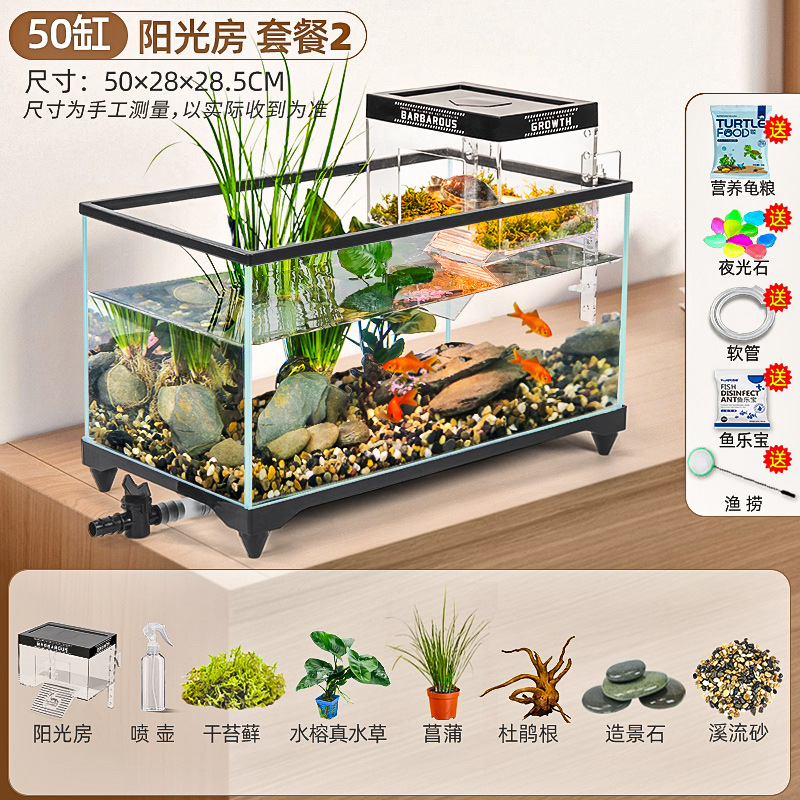 거북이 먹이 탱크 거실 가정용 생태 조경 탱크 데스크탑 작은 빌라 바구니 테이블 새 스타일 브라질 거북이 물고기 탱크스토어 가기