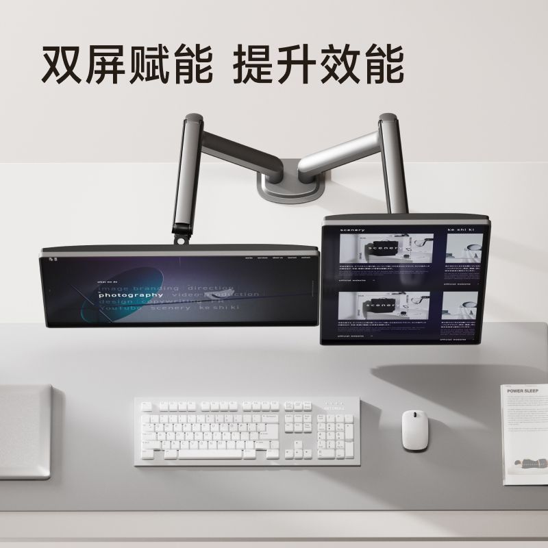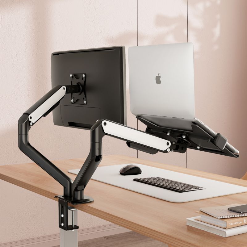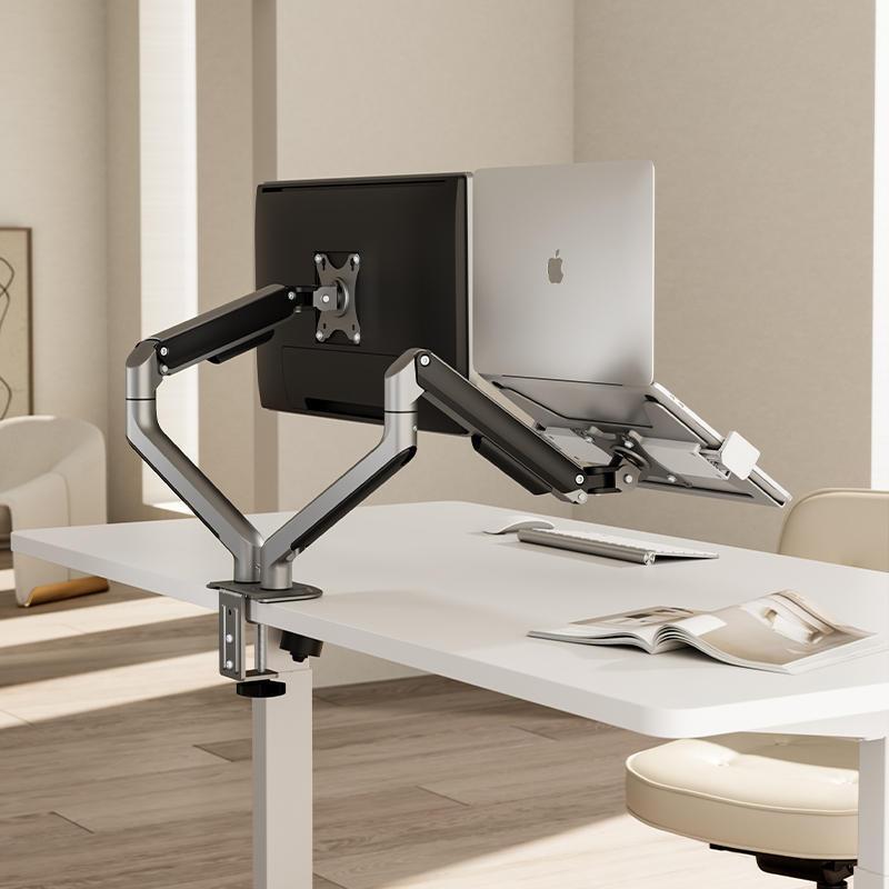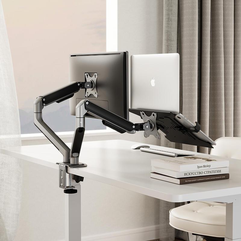 Brateck North Arc 디스플레이 브래킷 듀얼 스크린 컴퓨터 사무실 랙 노트북 화면 2-in -1 브래킷 E350
