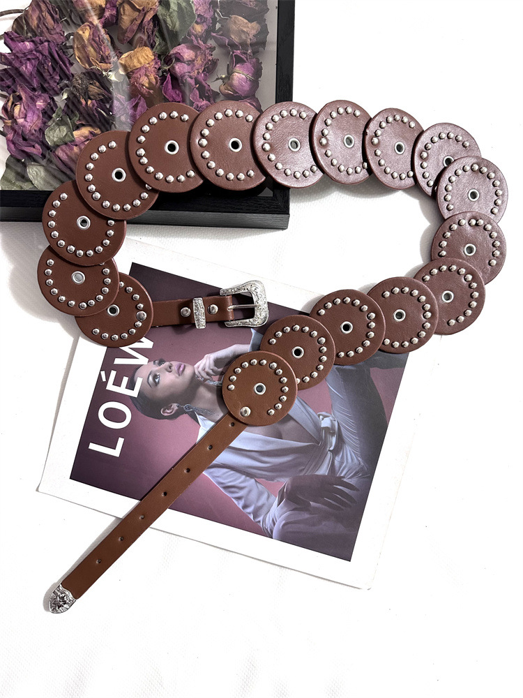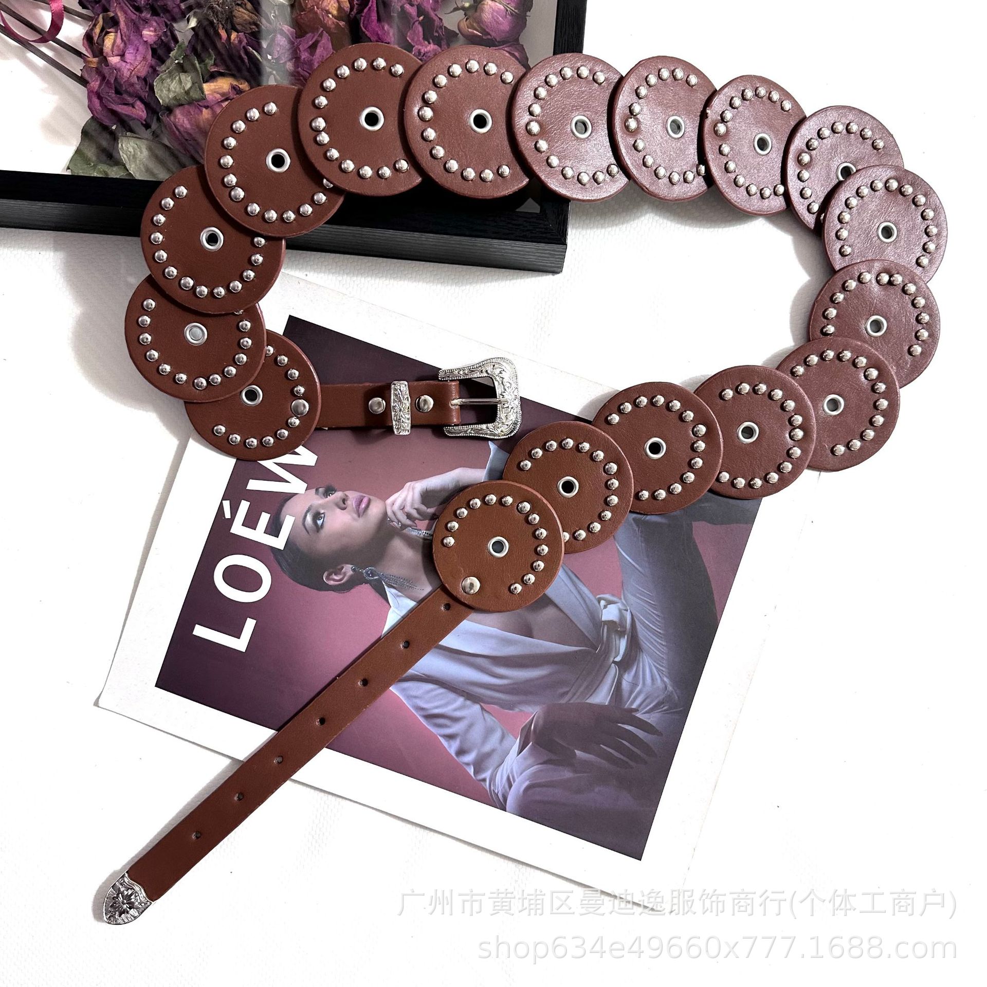 미국 레트로 레오파드 무늬 벨트 여성 장식 원피스 스웨터 스파이스 소녀 리벳 벨트 라운드 할로우 와이드 허리 커버