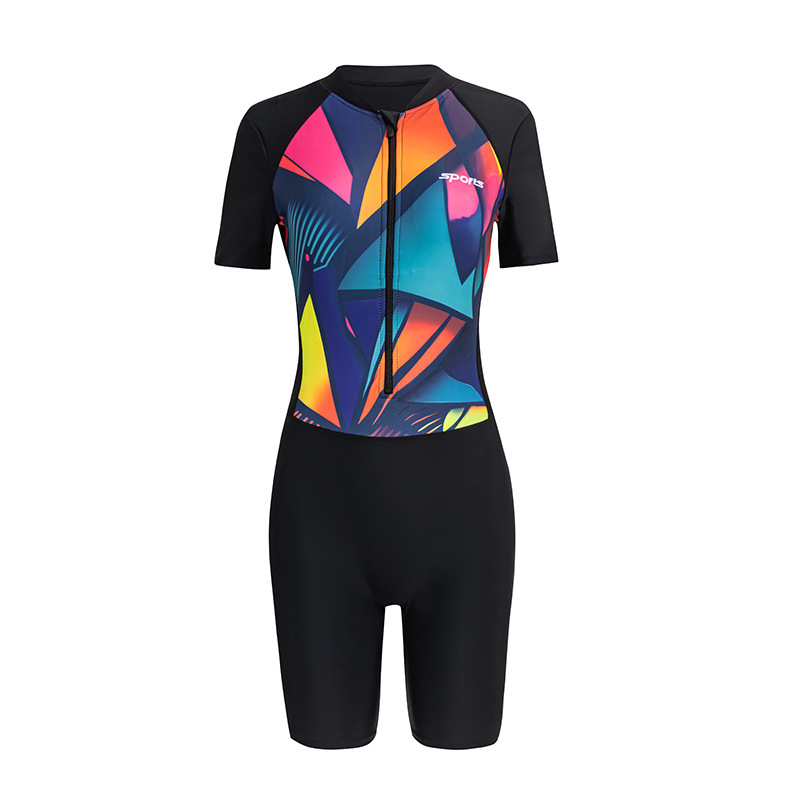 새로운 여성 수영복 플러스 사이즈 스포츠 인쇄 패치 워크 수영복 원피스 복서 섹시한 통통녀 플러스 사이즈 온천 수영복