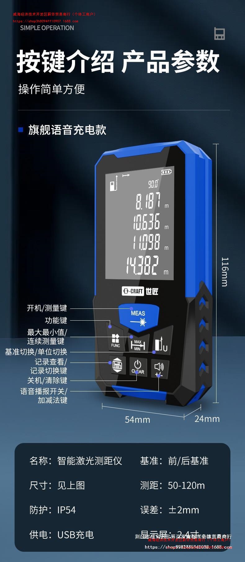 Shijiang 레이저 거리계 고정밀 핸드 헬드 적외선 측정 통치자 측정실 지능형 전자 통치자 측정 장비스토어 가기